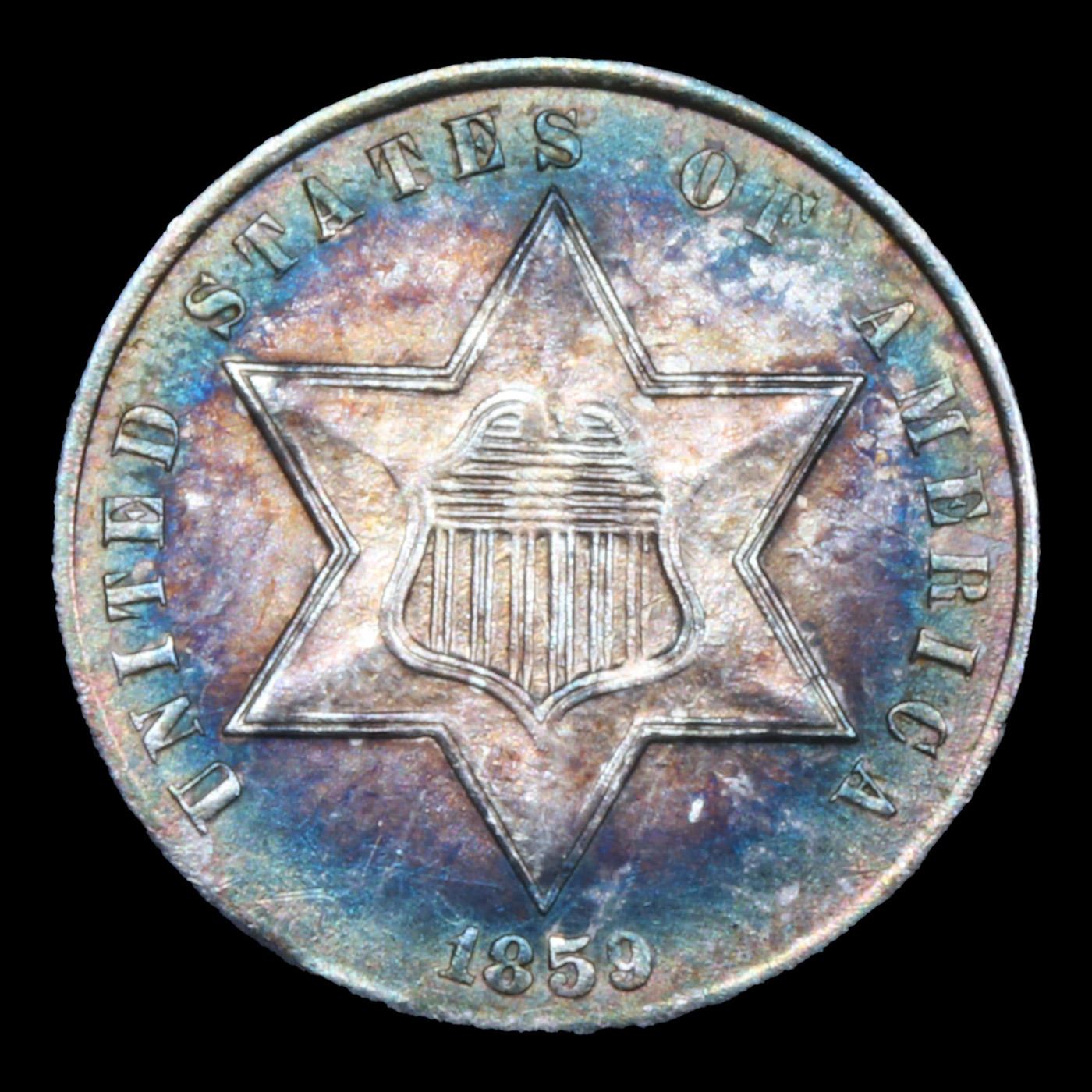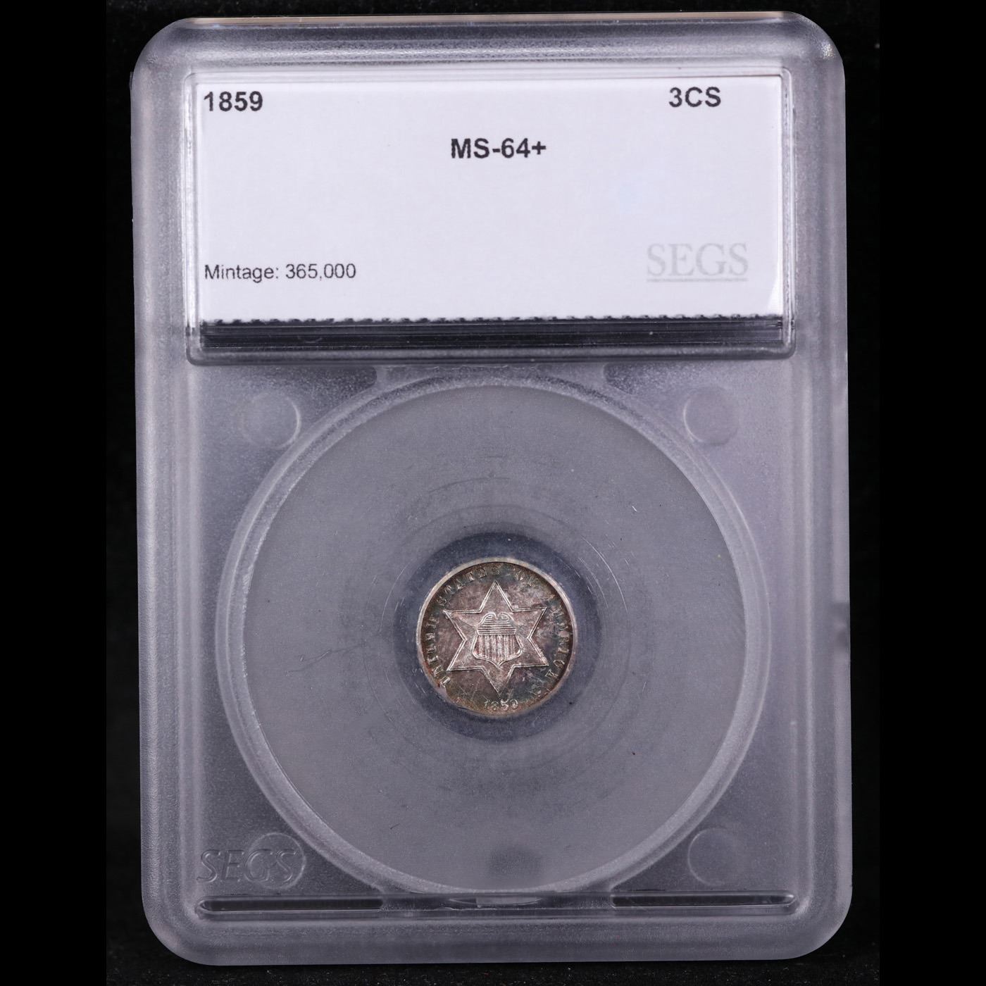 ***Auction Highlight*** 1859 Three Cent Silver 3cs Graded ms64+ BY SEGS.