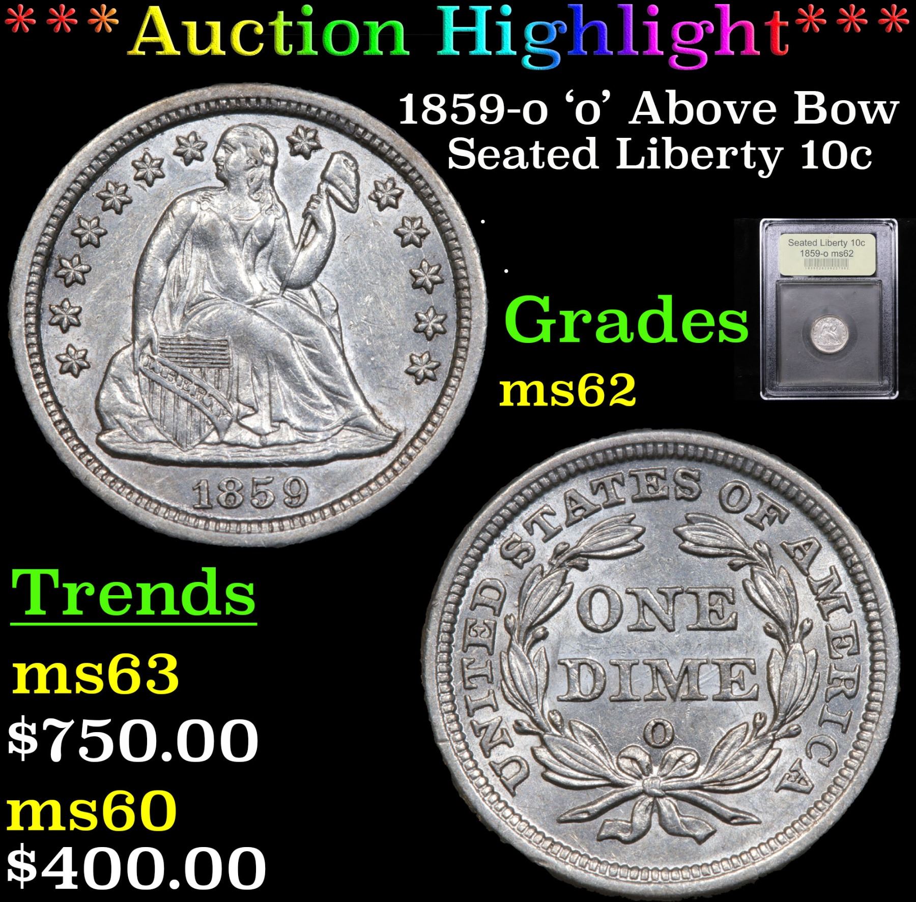 ***Auction Highlight*** 1859-o 'o' Above Bow Seated Liberty Dime 10c Graded Select Unc By USCG (fc)