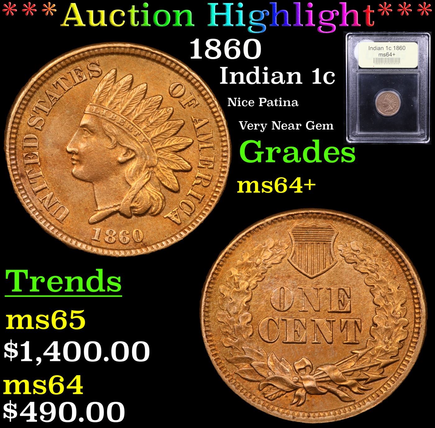 ***Auction Highlight*** 1860 Indian Cent 1c Graded Choice+ Unc By USCG. A Corey's Pick, Bid to Win Coin