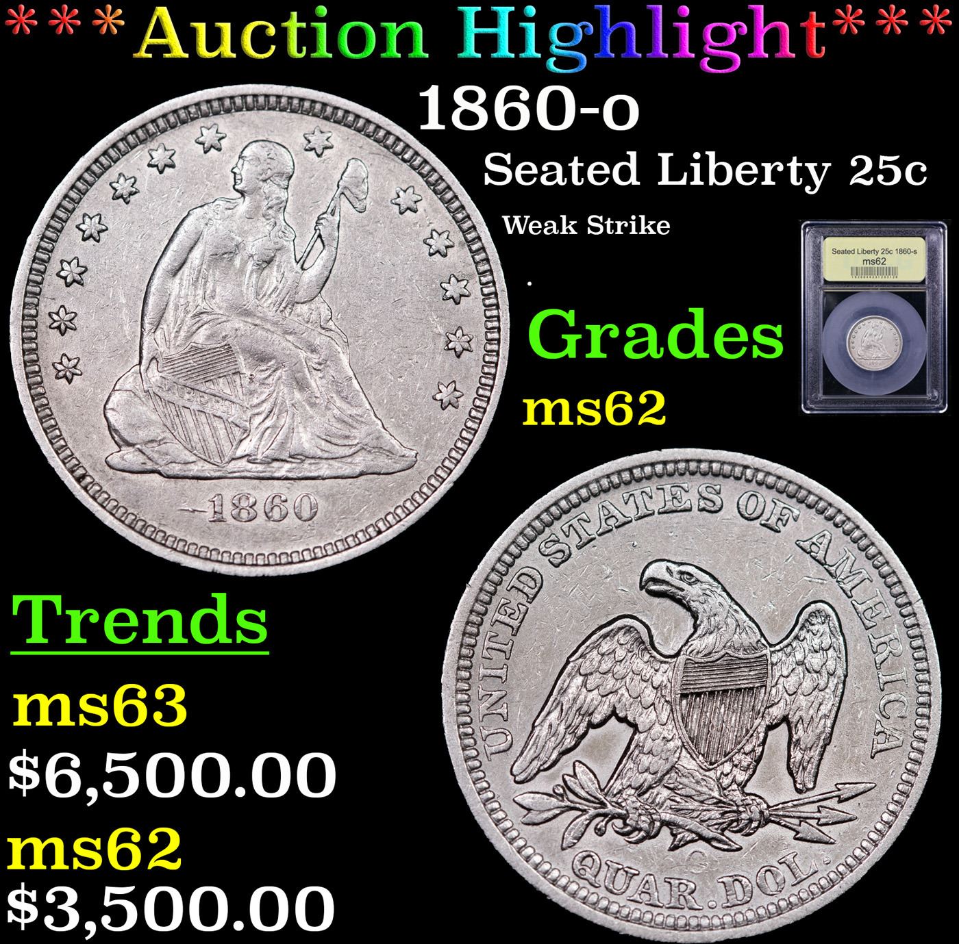 ***Auction Highlight*** 1860-o Seated Liberty Quarter 25c Graded Select Unc By USCG.