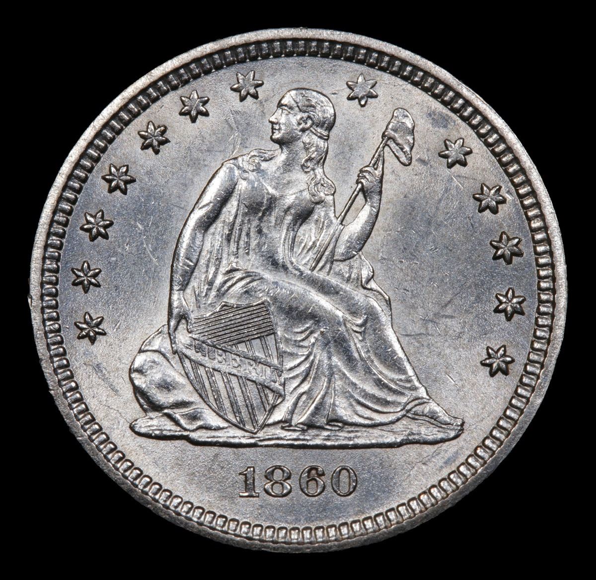 ***Auction Highlight*** 1860-p Seated Liberty Quarter 25c Graded Choice+ Unc By USCG (fc)