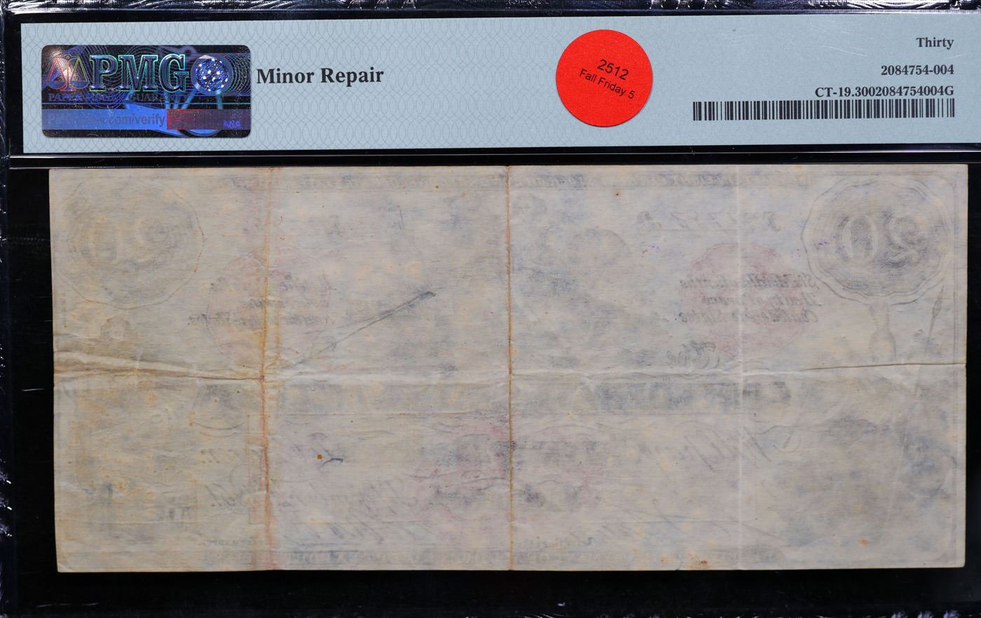 ***Auction Highlight*** 1861 $20 Confederate Note, CT-19 Contemporary Counterfeit Graded vf30 By PMG