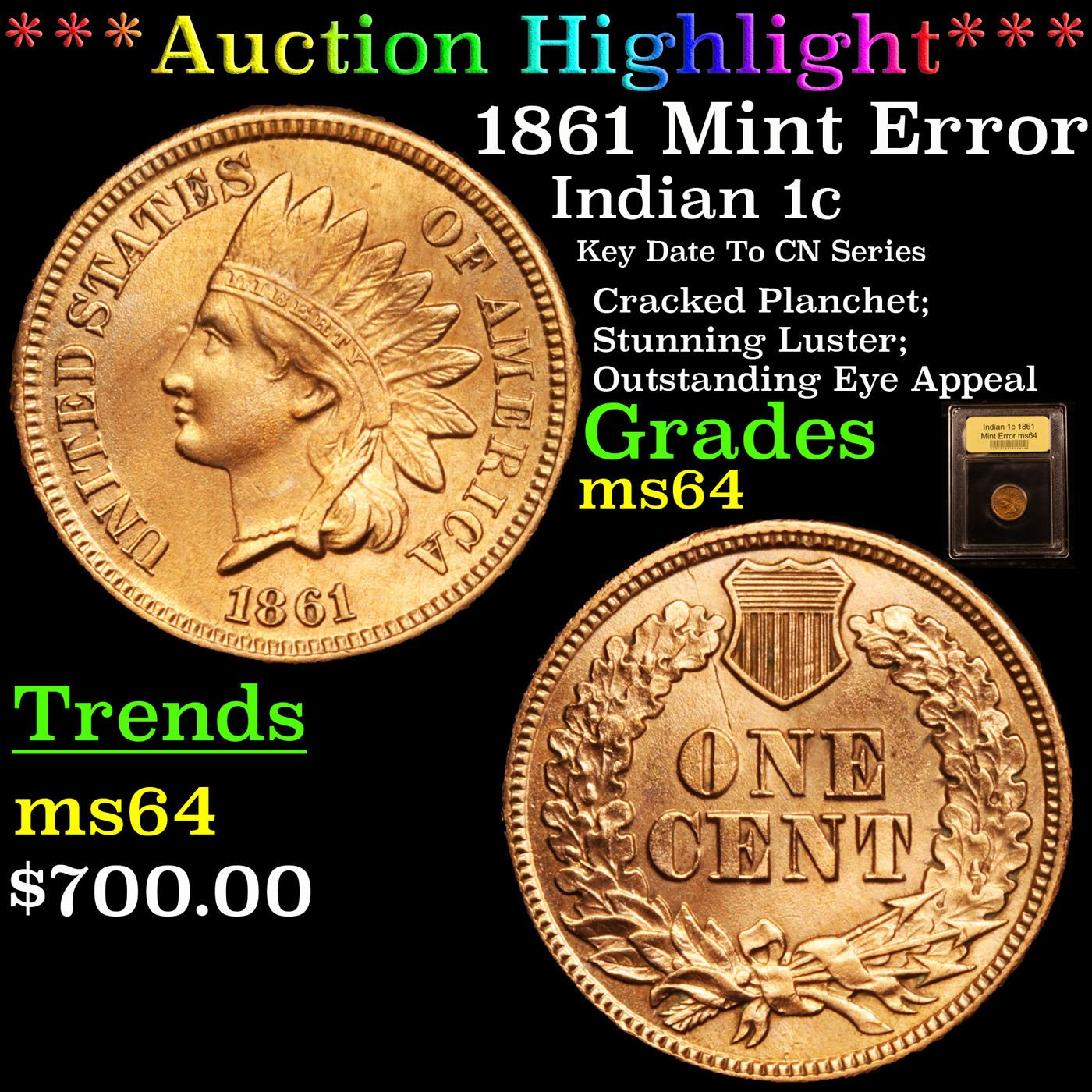 ***Auction Highlight*** 1861 Mint Error Indian Cent 1c Graded Choice Unc By USCG. A Corey's Pick, Bid to Win Coin