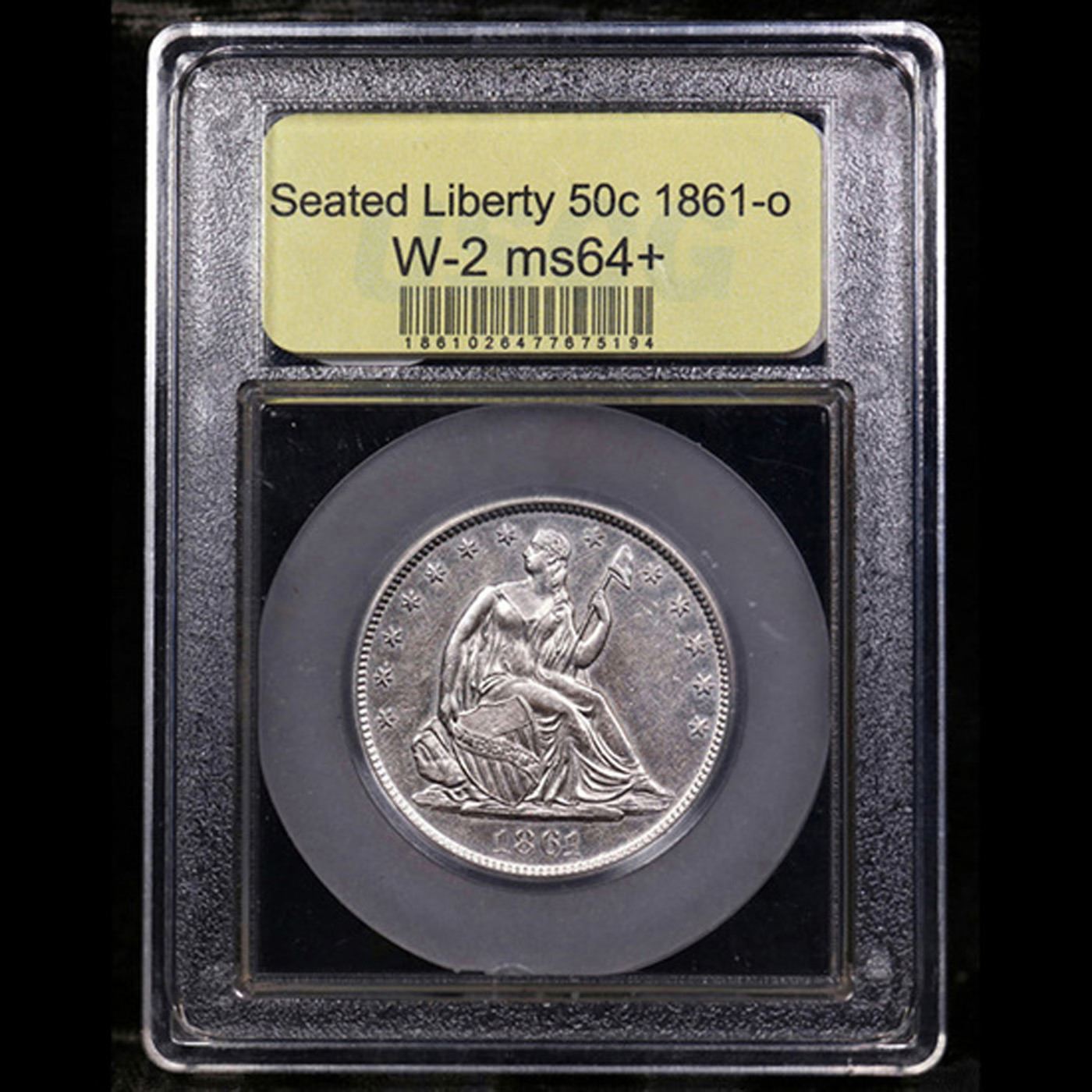 ***Auction Highlight*** 1861-o W-2 USA Issue Seated Half Dollar 50c Graded Choice+ Unc BY USCG. The New Orleans Mint struck 2,532,633 half dollars in 1861, the first year of the Civil War and one that saw significant changes in governing authority for the Crescent City coinage facility. The first 330,000 examples were produced while the mint remained under federal control. The following 1,240,000 pieces were struck after Louisiana seceded from the Union, and the final 962,633 coins were delivered under the authority of the newly established Confederate States of America. Writing in the 2013 reference A Register of Liberty Seated Half Dollar Varieties, Volume IV, Bill Bugert breaks down the 14 known die pairings of this issue by the governing authority under which they were used A Key Date's Pick, Bid to Win Coin