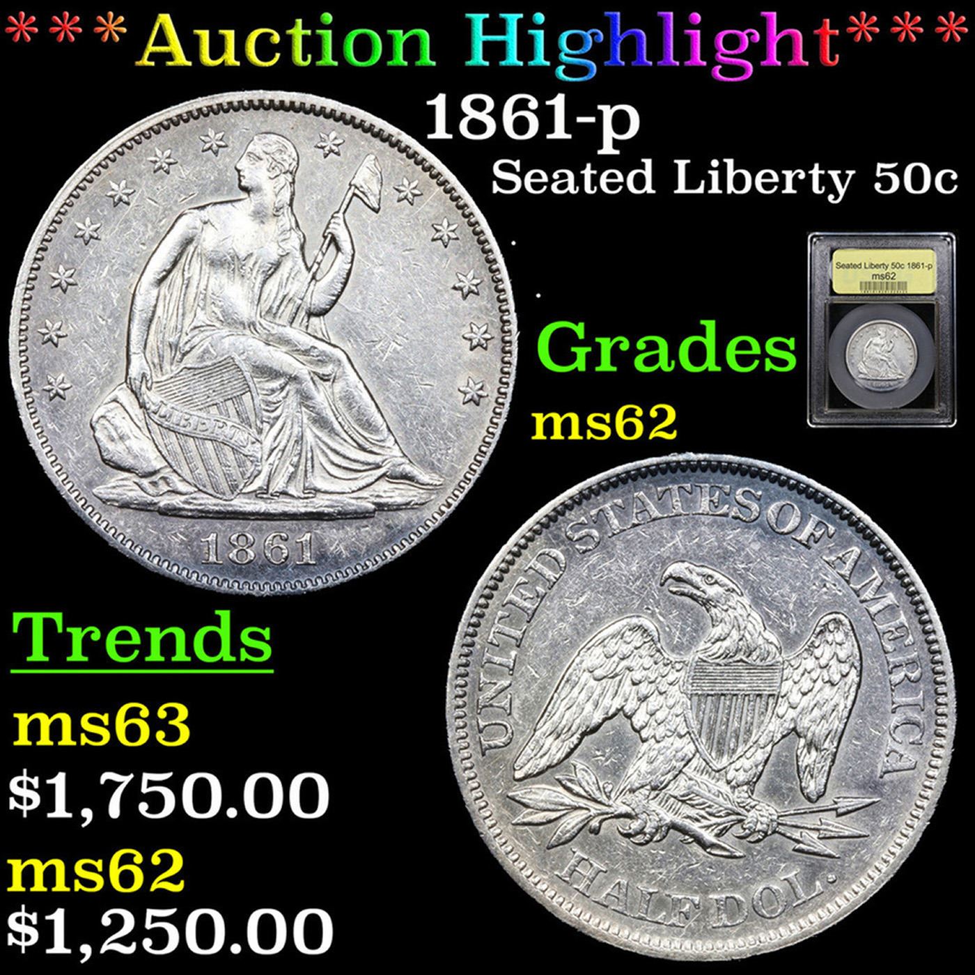 ***Auction Highlight*** 1861-p Seated Half Dollar 50c Graded Select Unc By USCG.