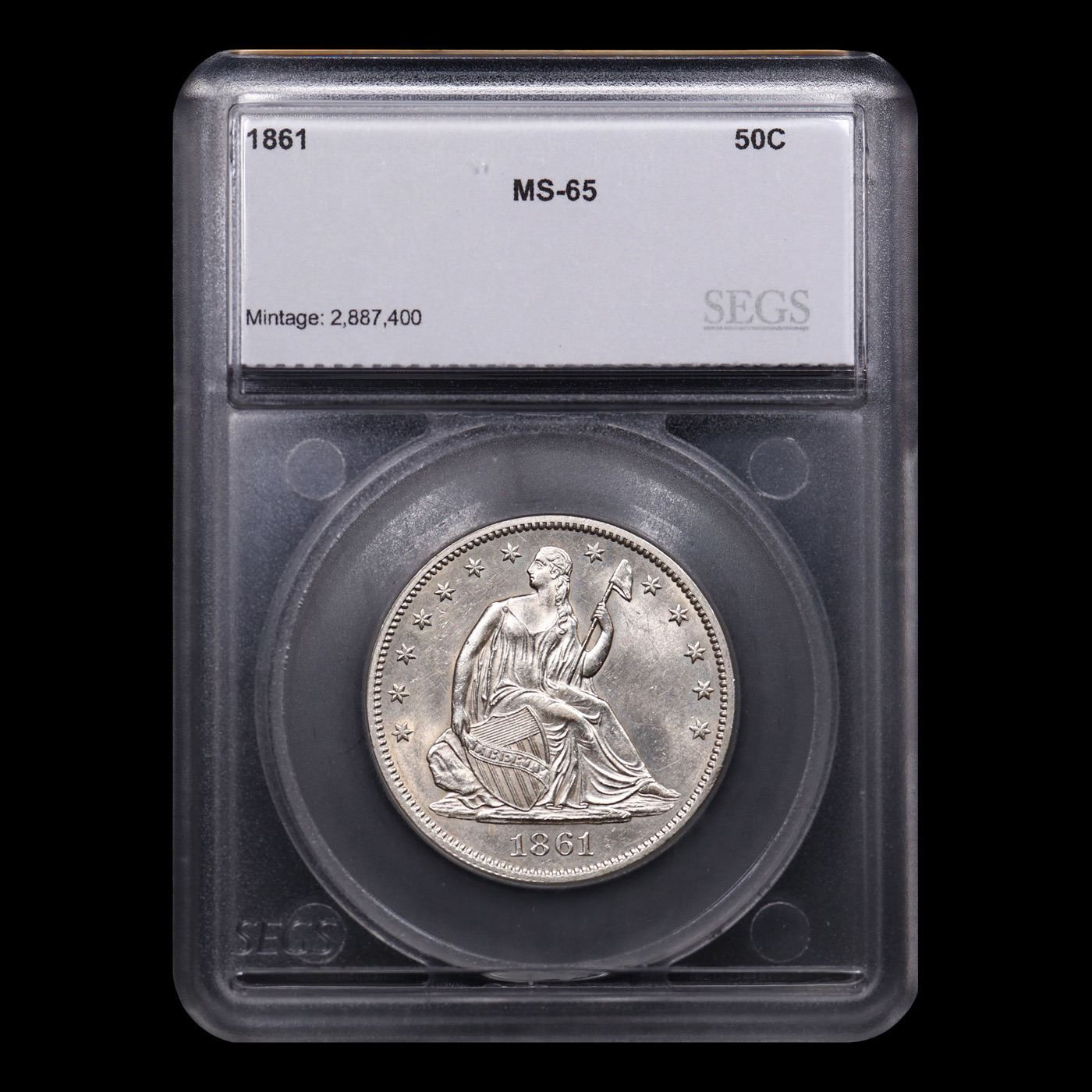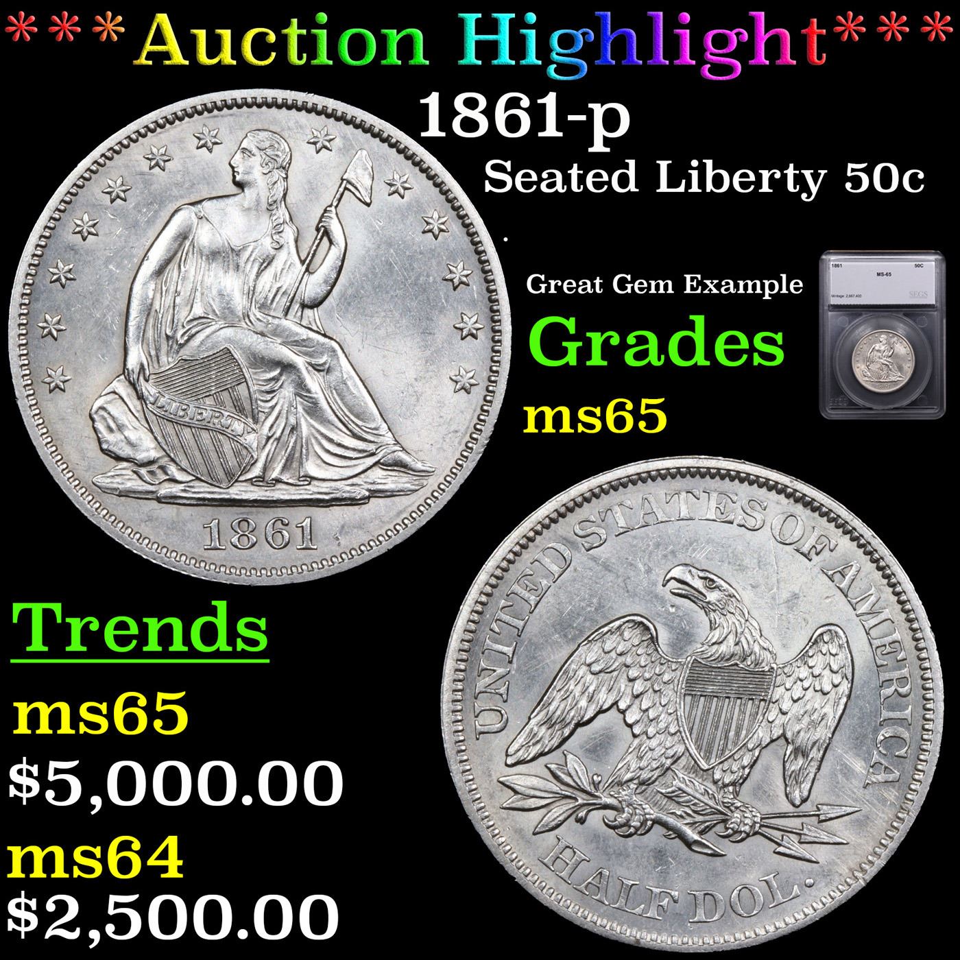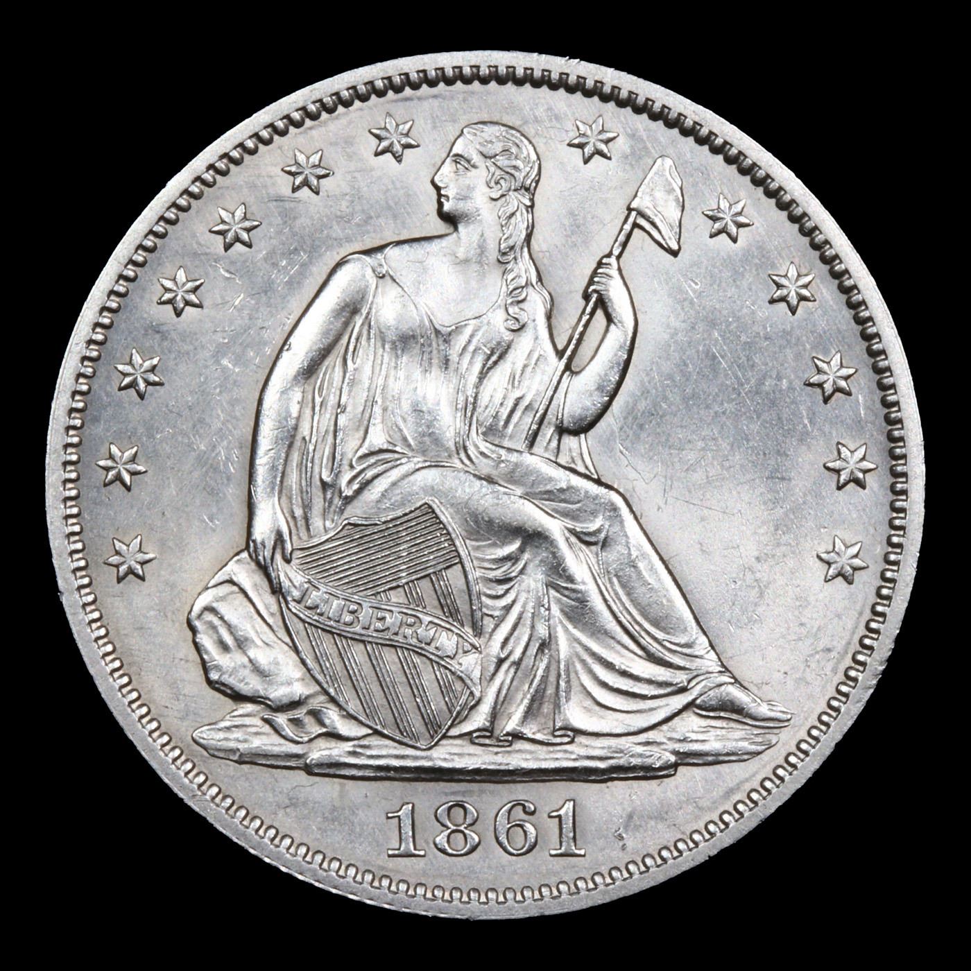 ***Auction Highlight*** 1861-p Seated Half Dollar 50c Graded ms65 BY SEGS.