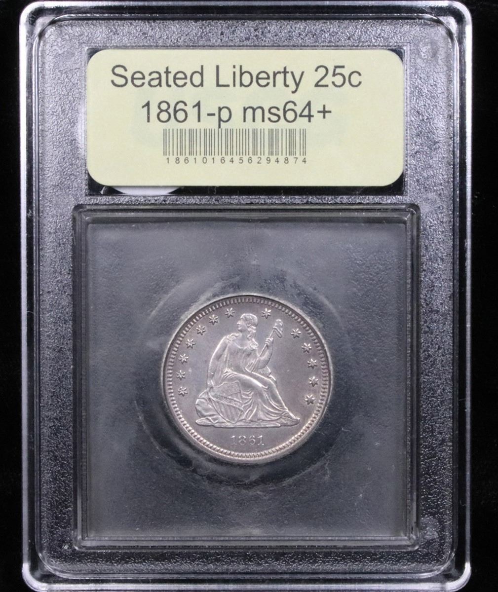 ***Auction Highlight*** 1861-p Seated Liberty Quarter 25c Graded Choice+ Unc By USCG. A Corey's Pick, Bid to Win, Don't let it get Away Coin