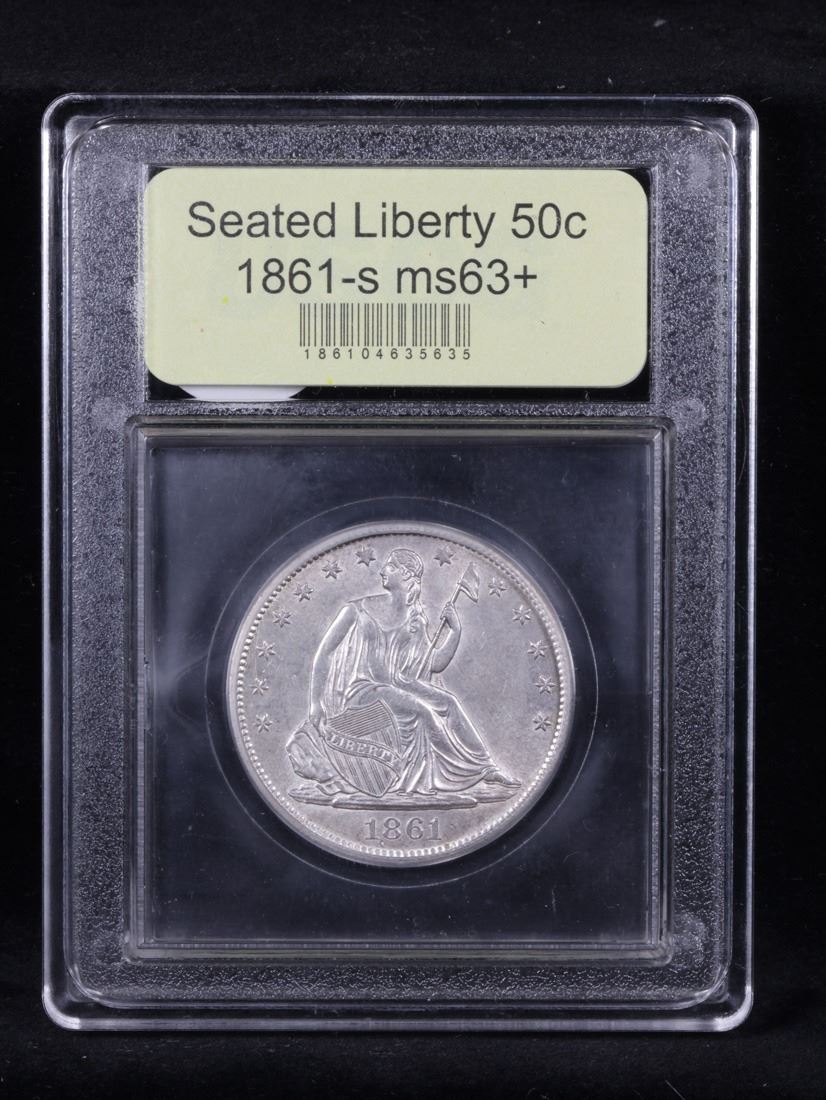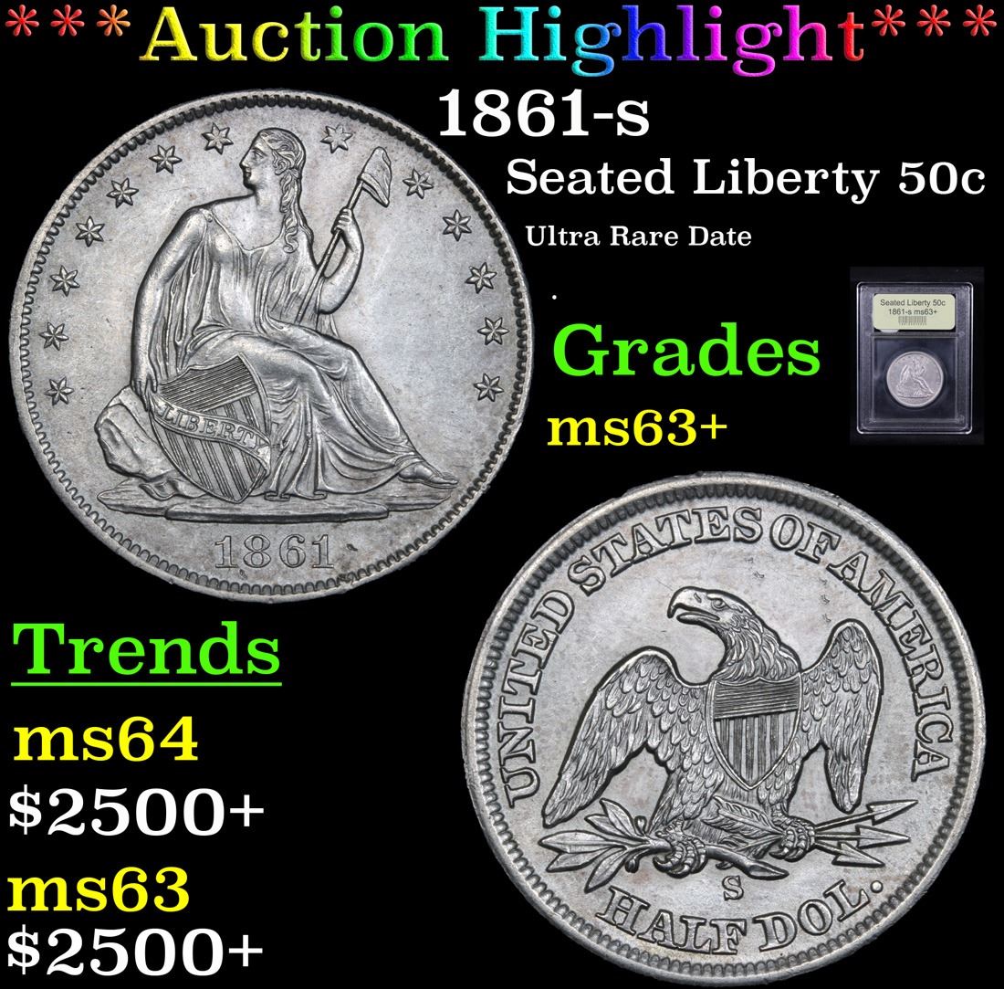 ***Auction Highlight*** 1861-s Ultra Rare Date . Seated Half Dollar 50c Graded Select+ Unc By USCG. A Corey's Pick, Bid to Win, Don't let it get Away Coin