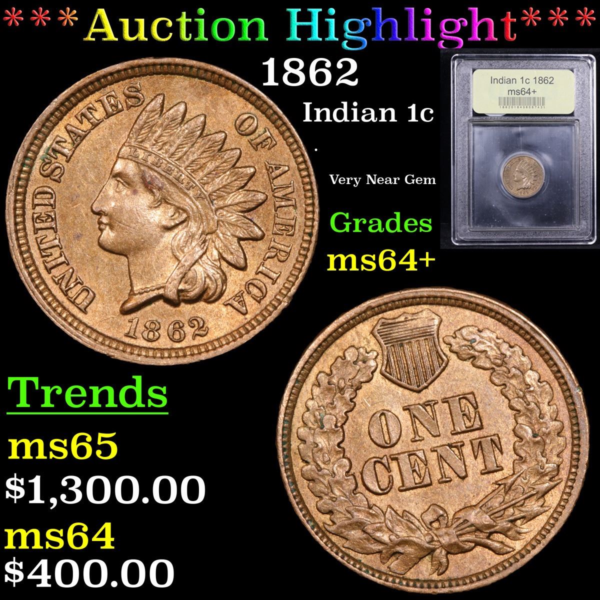***Auction Highlight*** 1862 . Very Near Gem Indian Cent 1c Graded Choice+ Unc By USCG. A Corey's Pick, Bid to Win, Don't let it get Away Coin