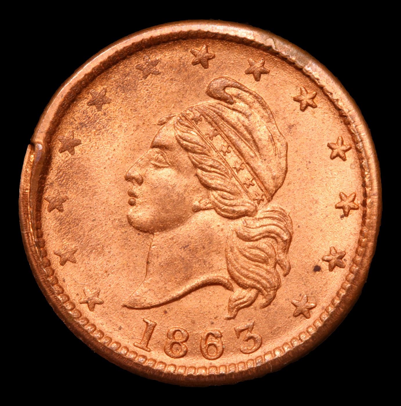 ***Auction Highlight*** 1863 Liberty Cap Civil War Token 1c Graded Gem+ Unc RD By USCG (fc)