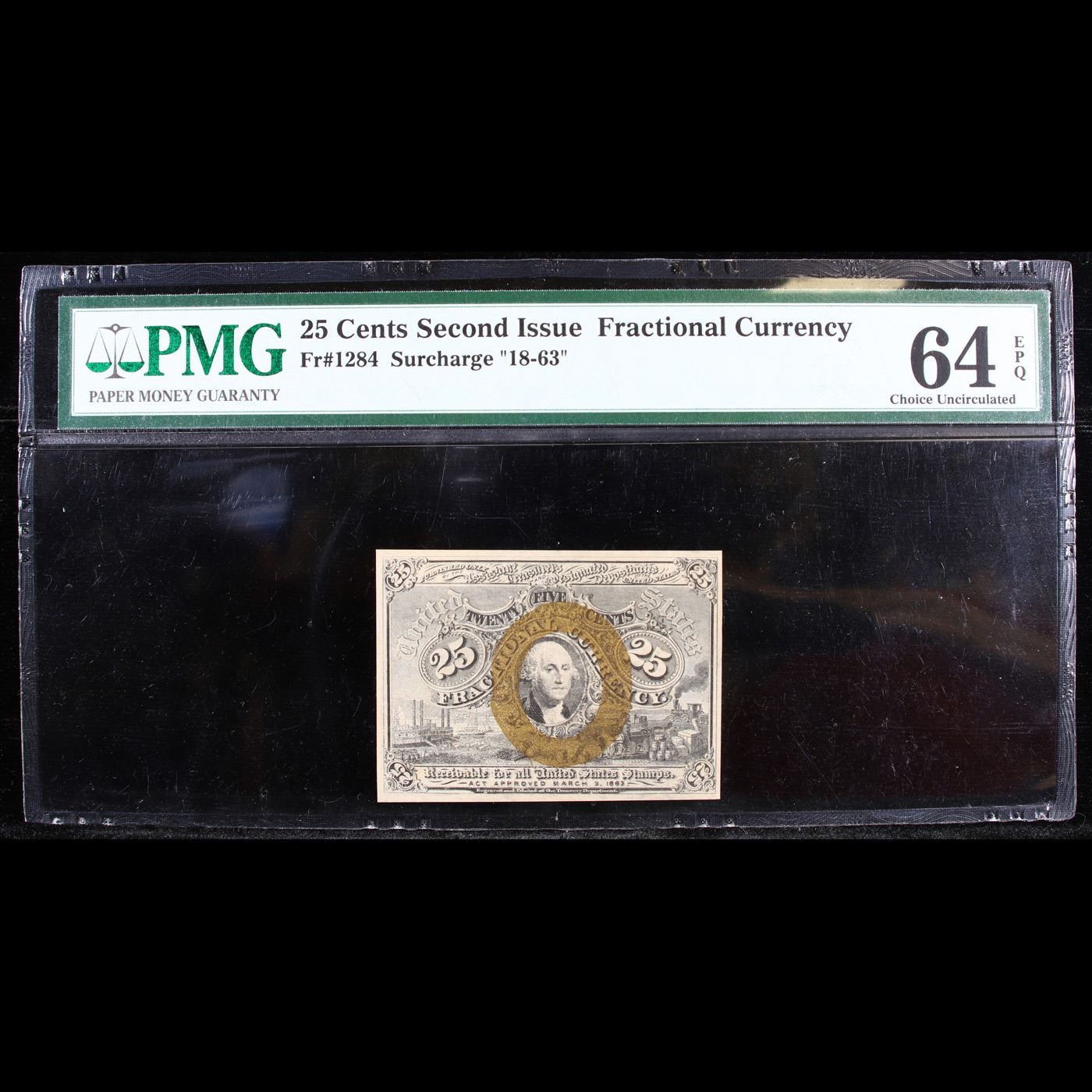 ***Auction Highlight*** 1863 US Fractional Currency 25c Second Issue fr-1284 Washington In Oval Graded cu64 PPQ By PMG.