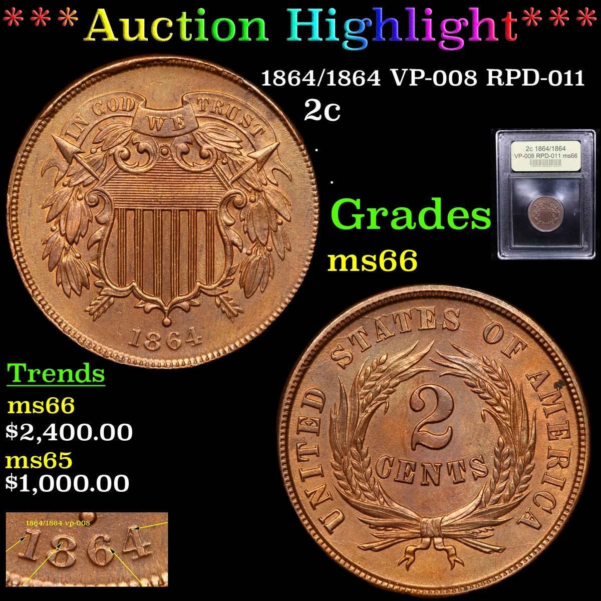 ***Auction Highlight*** 1864 /1864 VP-008 RPD-011 2c Graded GEM+ Unc By USCG. A Corey's Pick, Bid to Win, Don't let it get Away, you might not find its equal Coin
