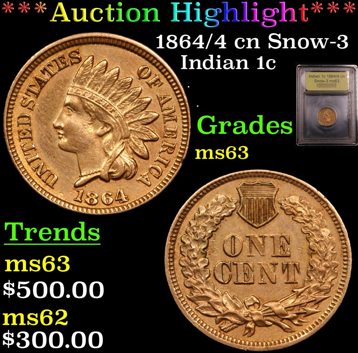 ***Auction Highlight*** 1864/4 cn Snow-3 Indian Cent 1c Graded Select Unc BY USCG. A Corey's Pick, Bid to Win Coin