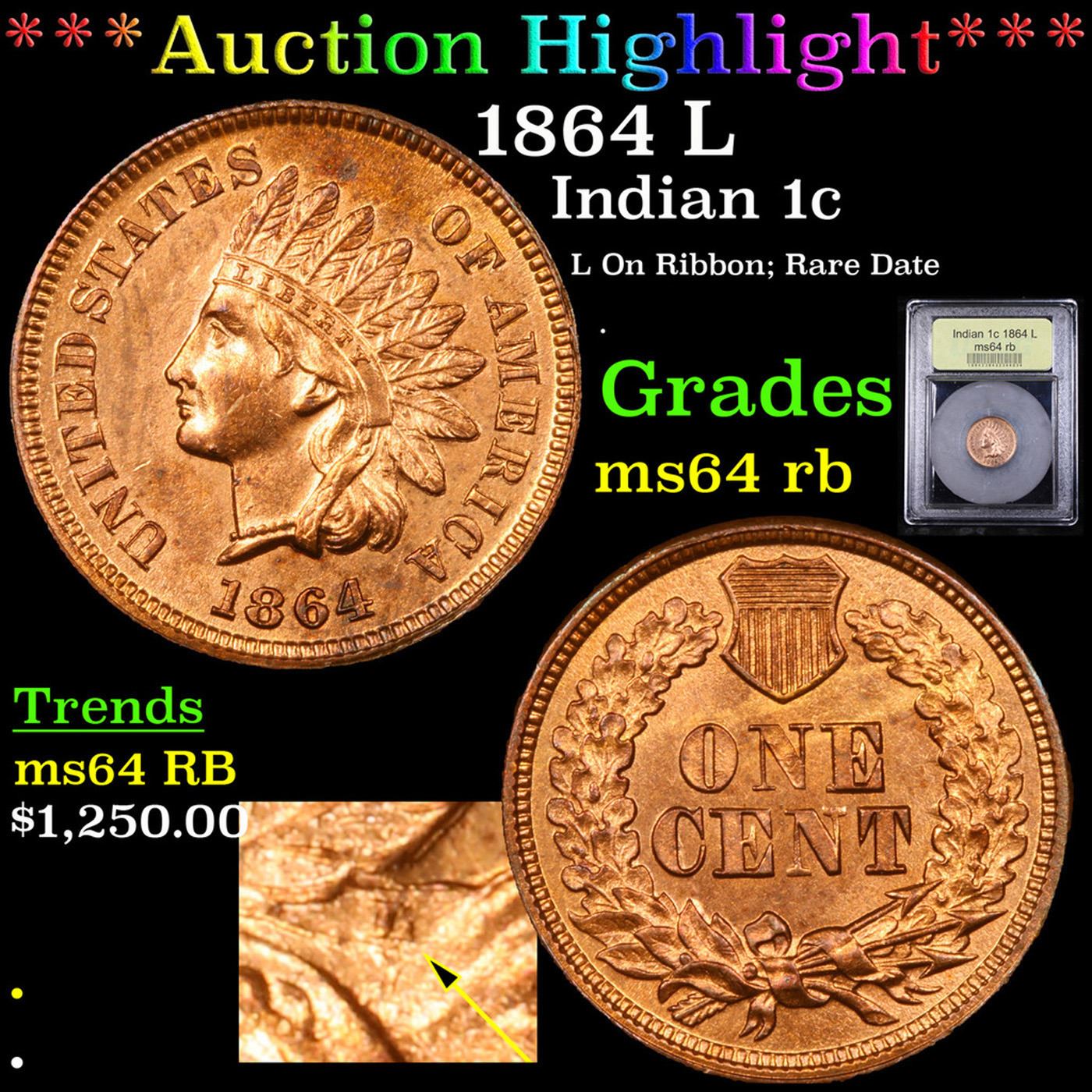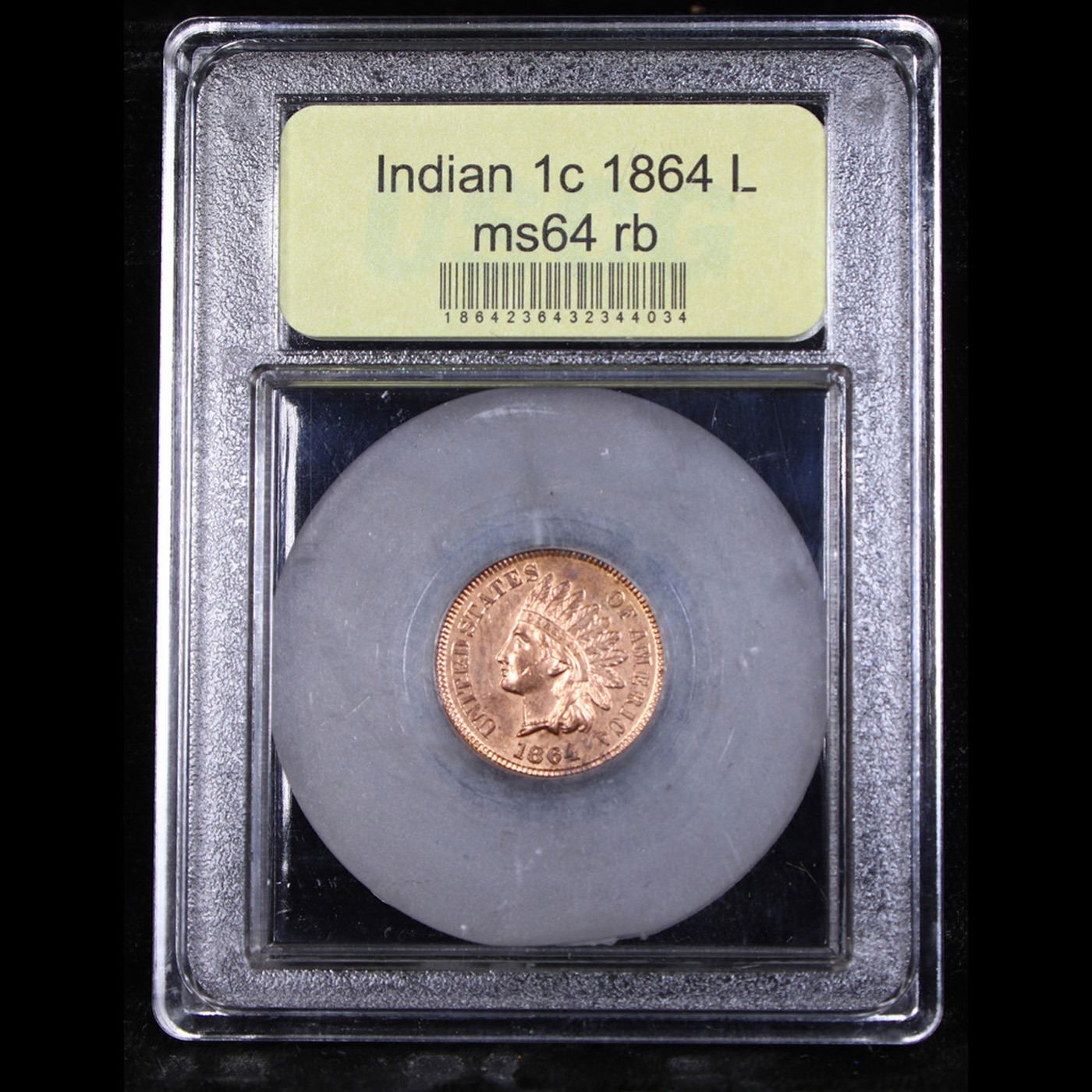 ***Auction Highlight*** 1864 L Indian Cent 1c Graded Choice Unc RB By USCG.