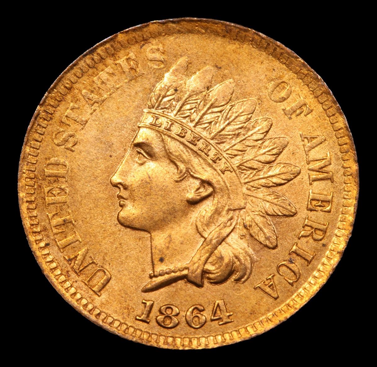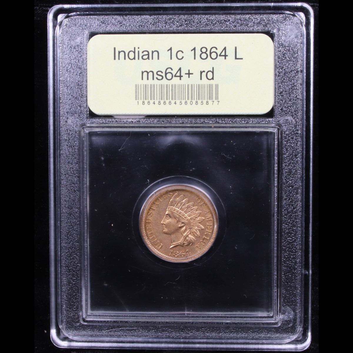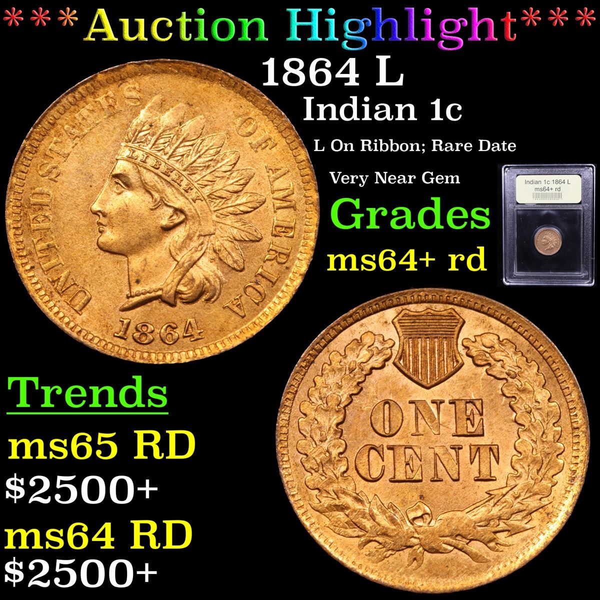 ***Auction Highlight*** 1864 L Indian Cent 1c Graded Choice+ Unc RD By USCG. Very scarce 1864 L on ribbon Indian cent variety. According to David Hall, “The 1864-L is scarce in circulated grades and very scarce in mint state. However, its price has as much to do with its popularity and importance to collectors as it does with its scarcity. All 1864-L Indian cents have a pointed bust on Ms. Liberty, while the no L’s have a rounded bust. So sometimes low grades are designated (correctly) as L’s even if you can't really see the L.