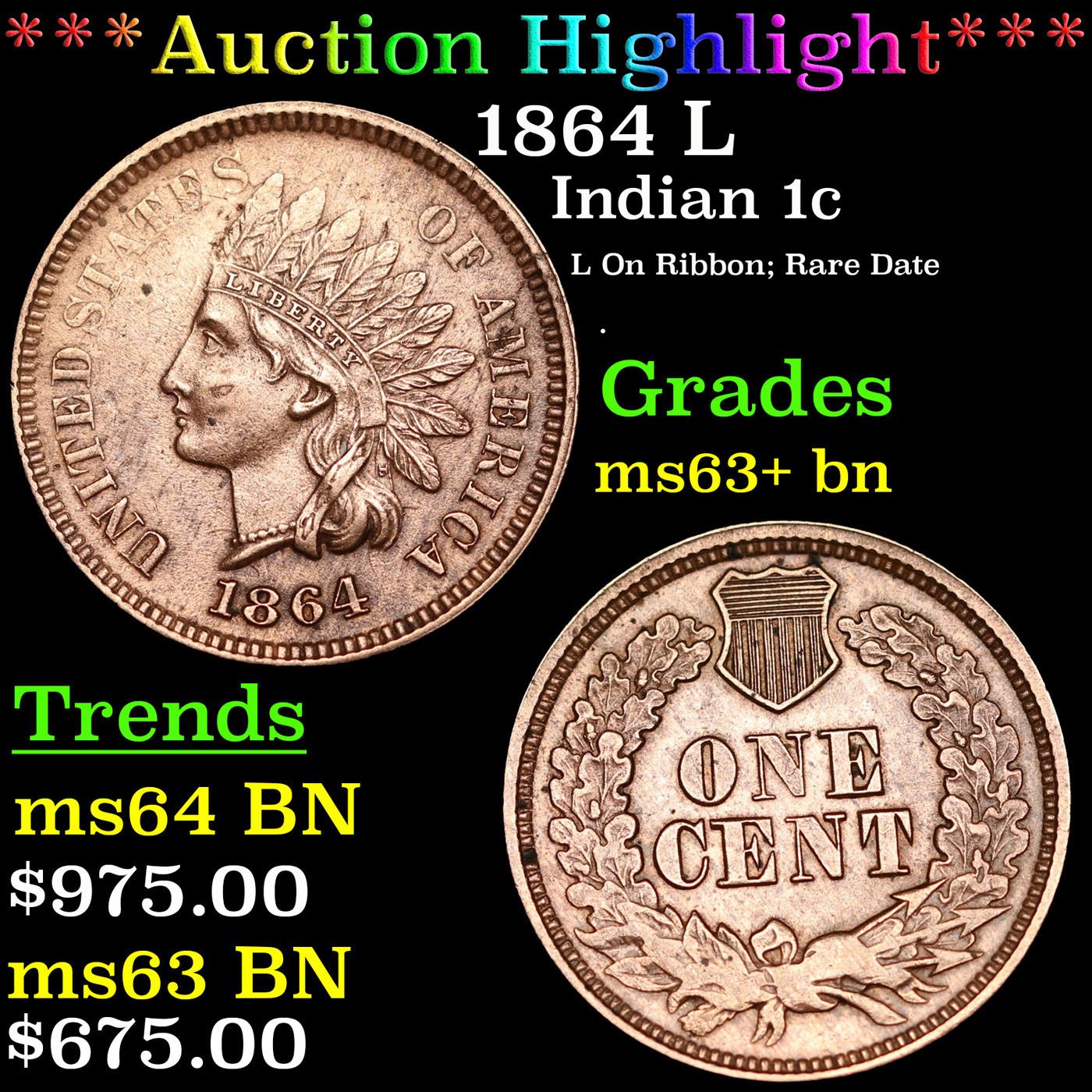 ***Auction Highlight*** 1864 L Indian Cent 1c Graded ms63+ bn BY SEGS. A Key Date's Pick, Bid to Win Coin