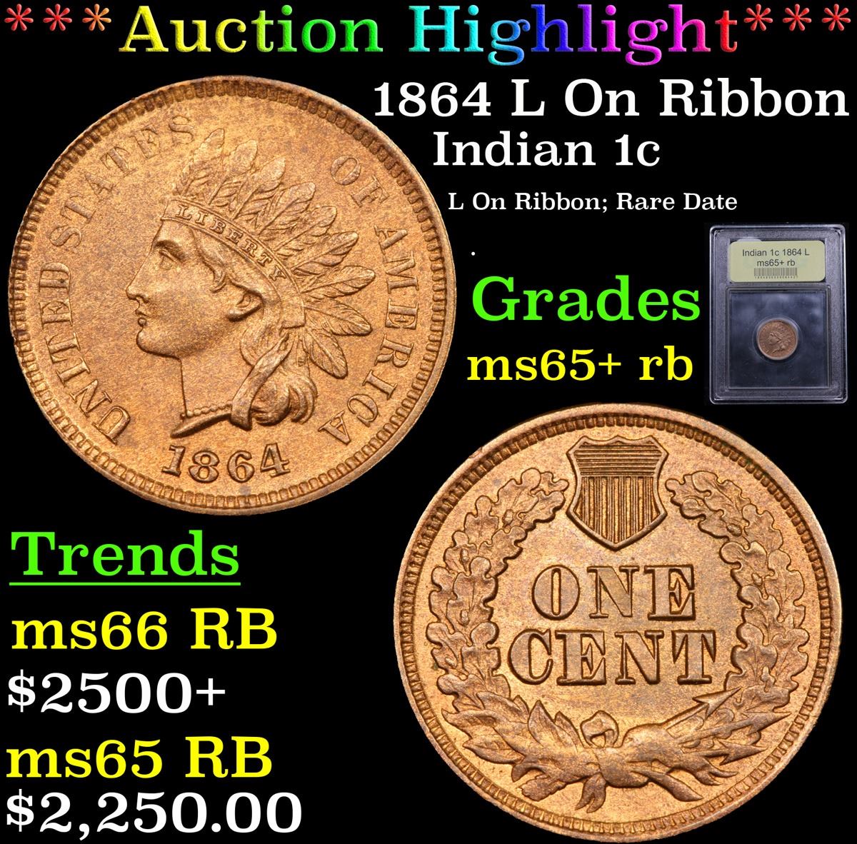 ***Auction Highlight*** 1864 L On Ribbon Indian Cent 1c Graded Gem+ Unc RB By USCG. A Corey's Pick, Bid to Win, Don't let it get Away, you might not find its equal Coin