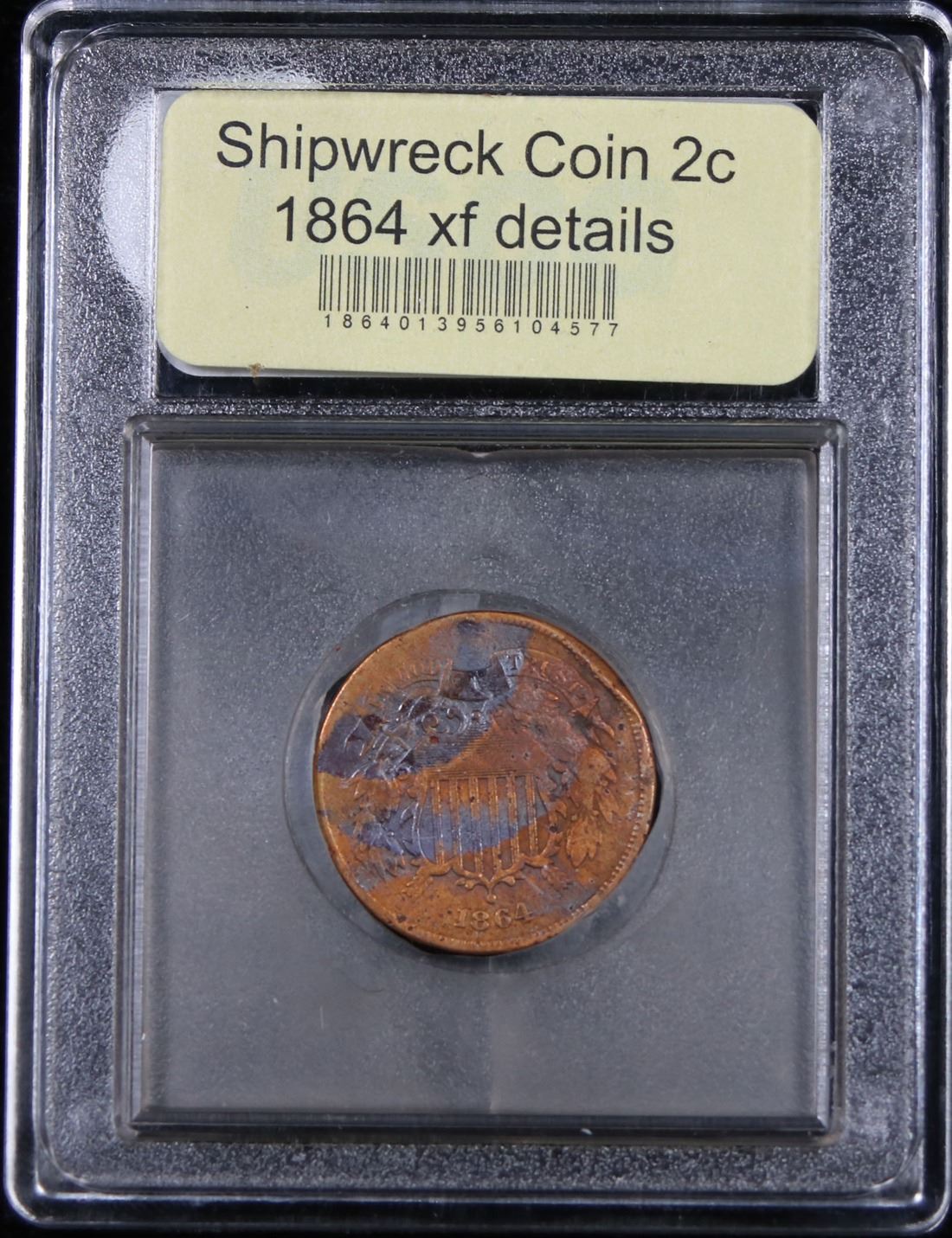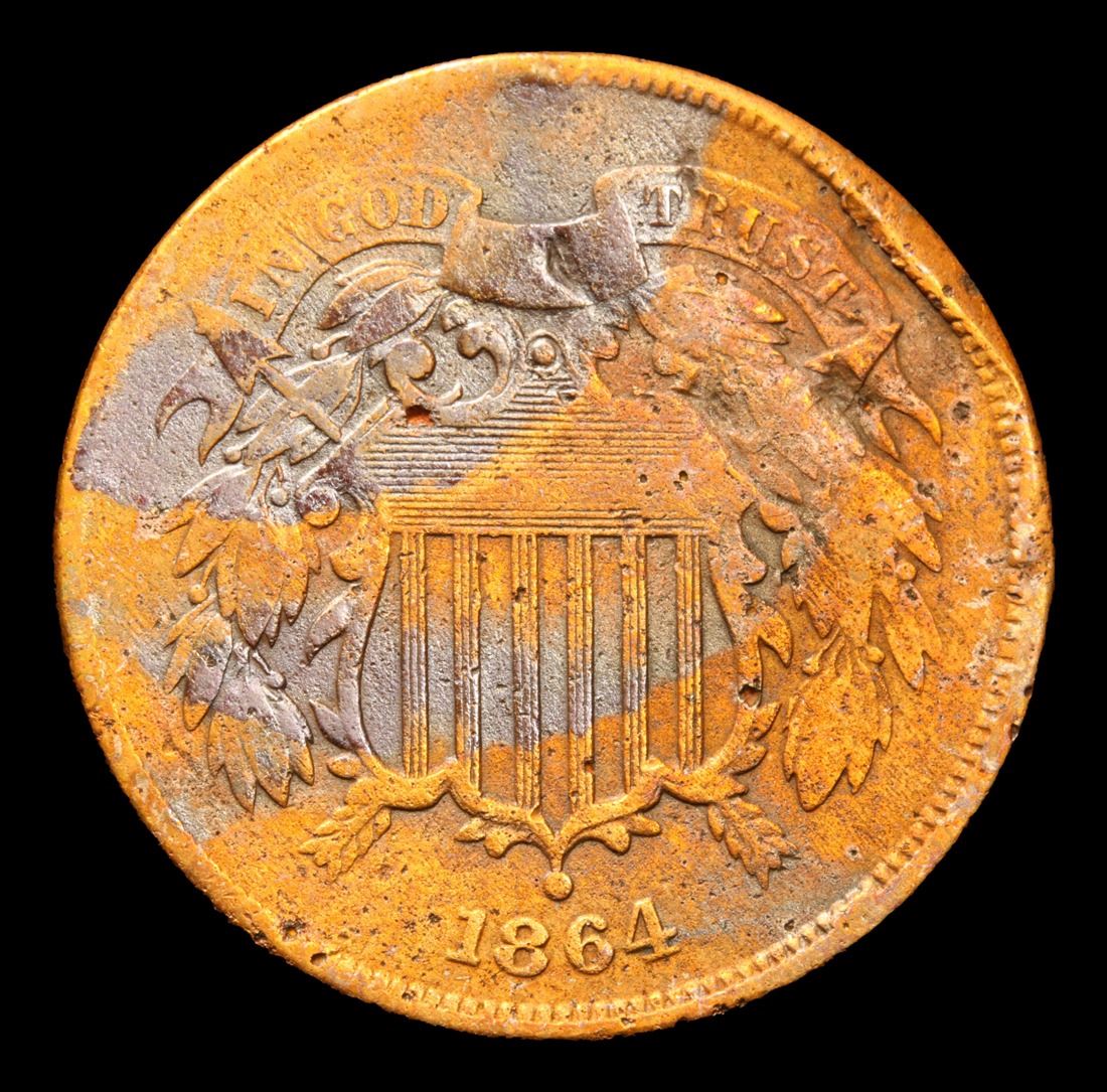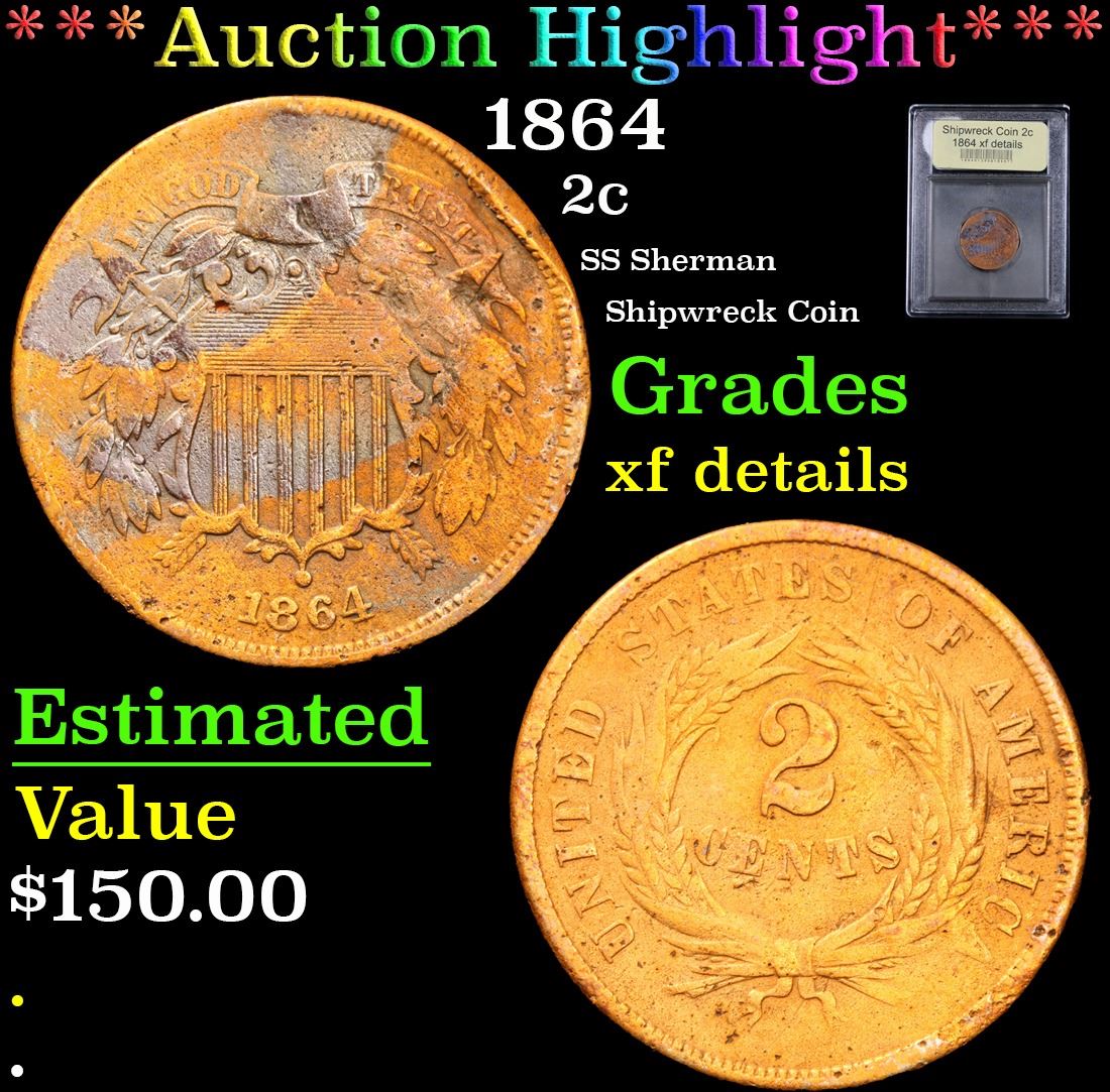 *Auction Highlight* 1864 Shipwreck Coin SS Sherman Two Cent Piece 2c Graded xf details By USCG.        The SS Sherman, sunk on January 9, 1874 off the North Carolina Coast