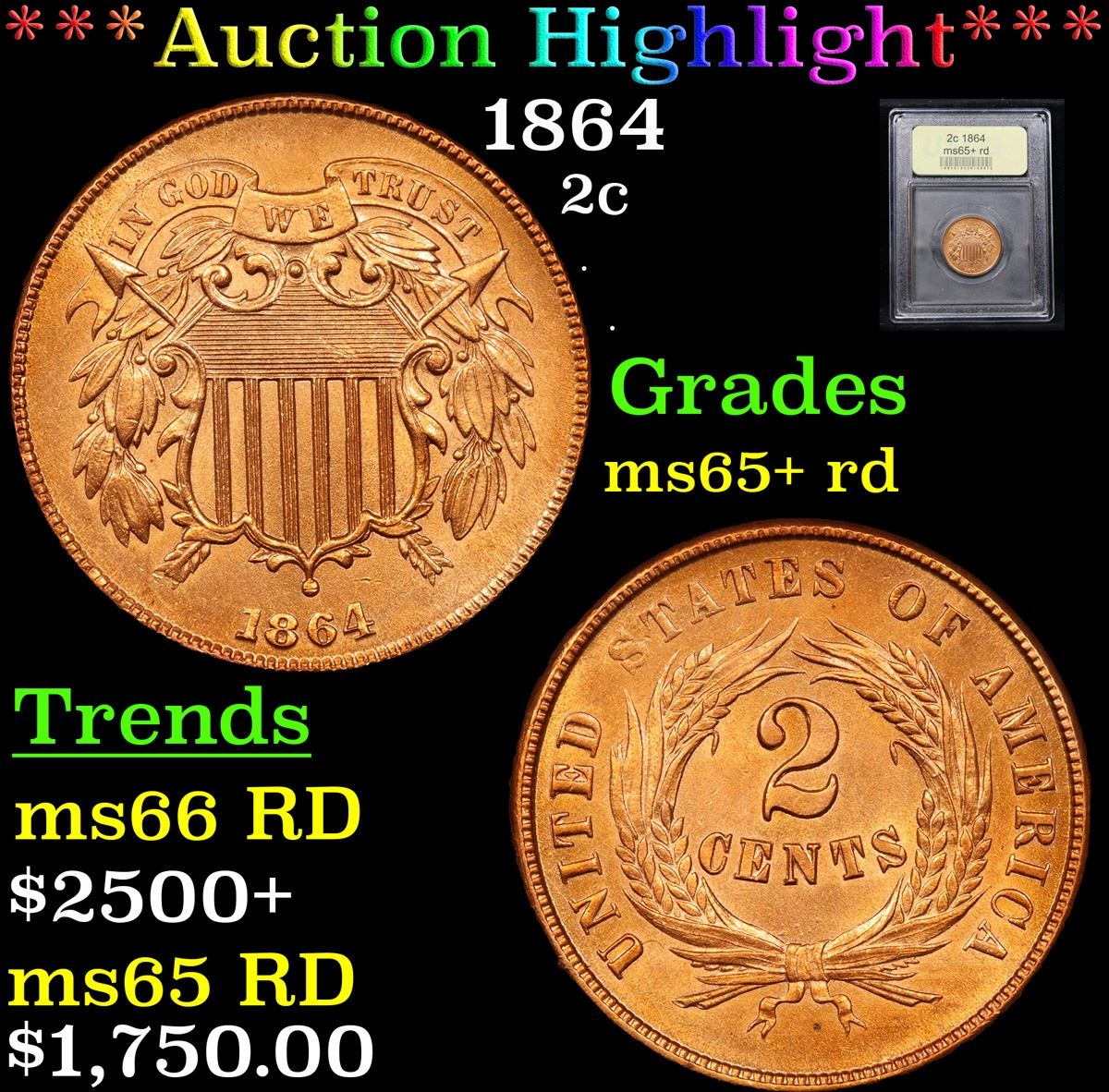 ***Auction Highlight*** 1864 . . Two Cent Piece 2c Graded Gem+ Unc RD By USCG. A Corey's Pick, Bid to Win, Don't let it get Away Coin