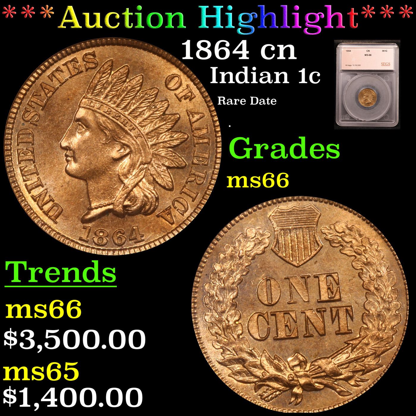 ***Auction Highlight*** 1864 cn Indian Cent 1c Graded ms66 By SEGS.