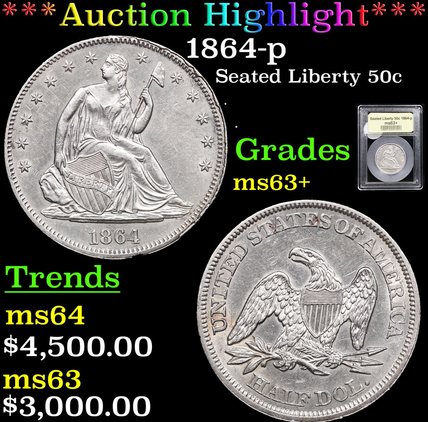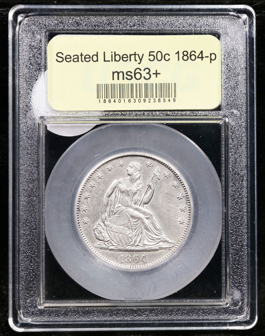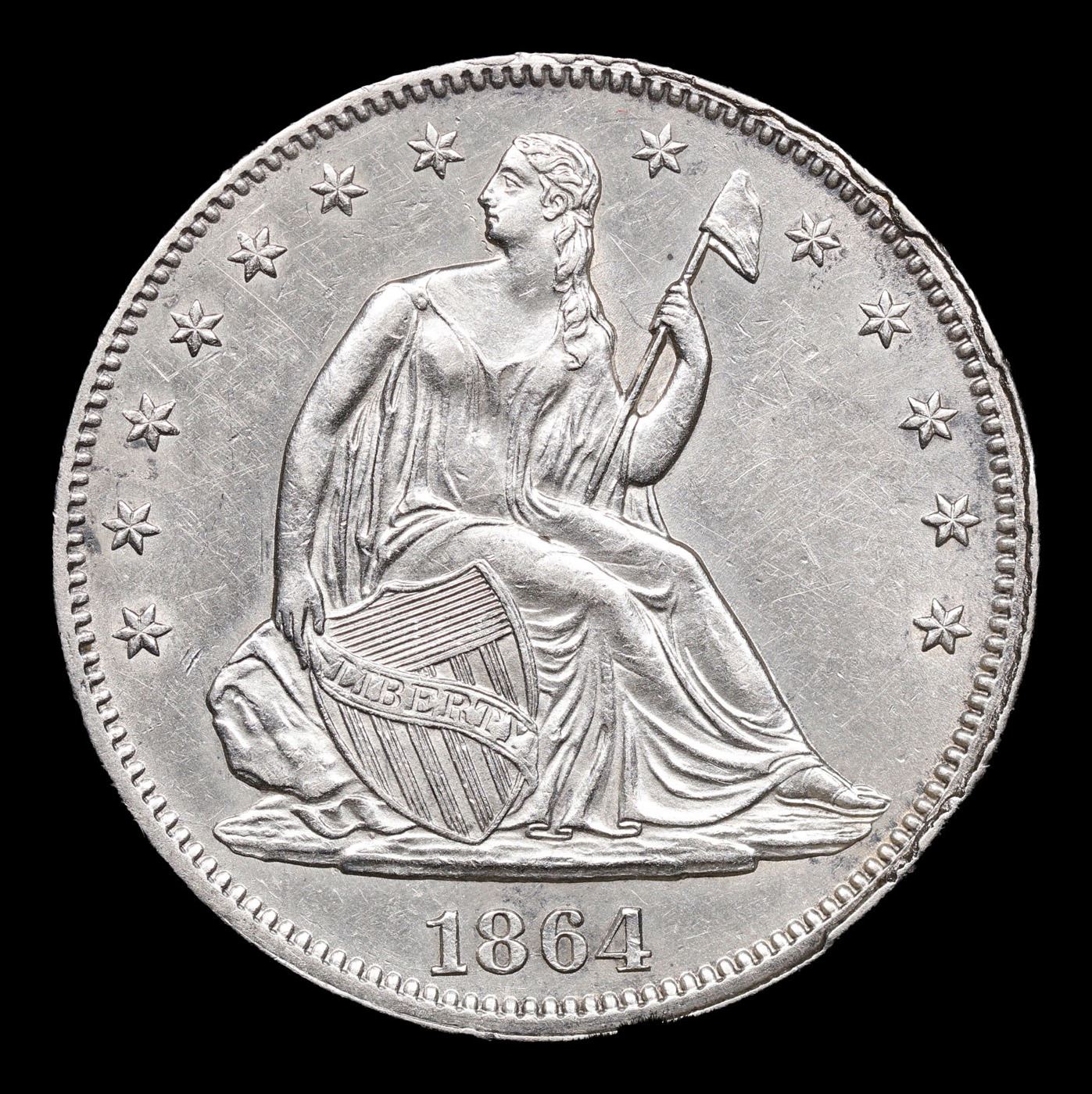 ***Auction Highlight*** 1864-p Seated Half Dollar 50c Grades Select+ Unc BY USCG.