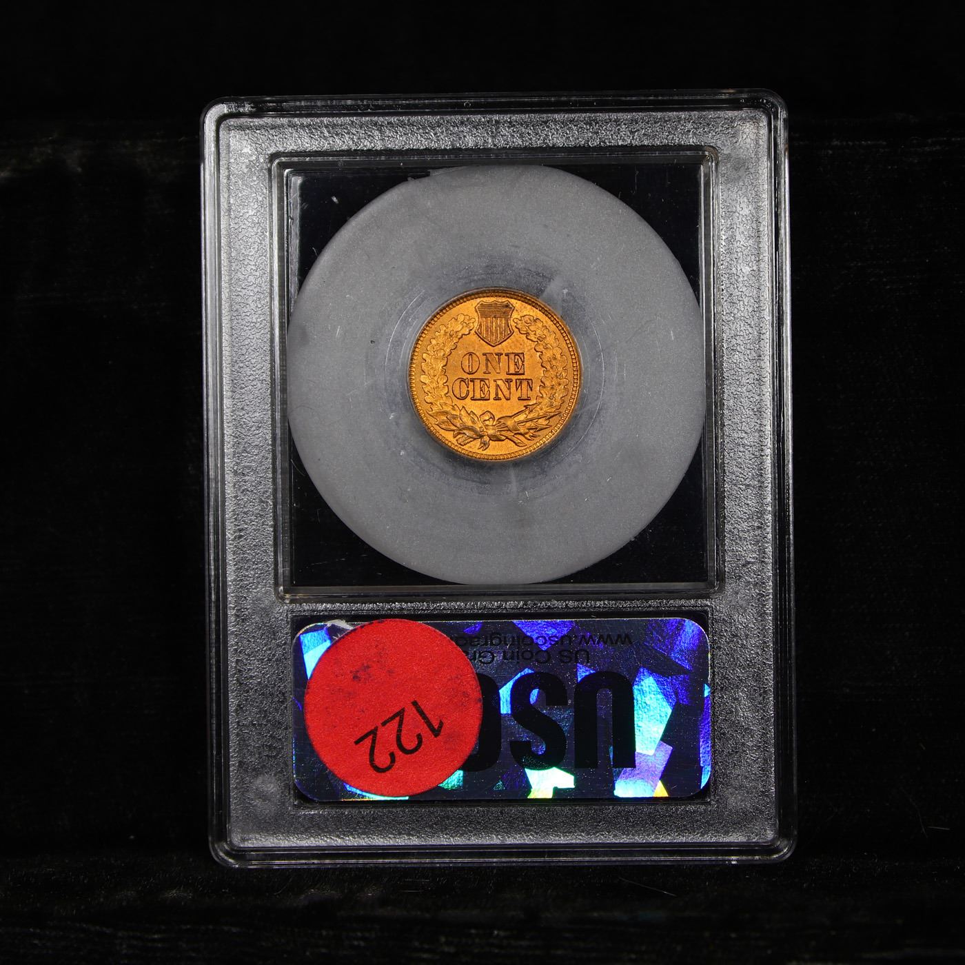 ***Auction Highlight*** 1865 Indian Cent 1c Graded Gem+ Unc RD By USCG. Within 1 Point of the Finest known in Red. Delightful orange-apricot and pale pinkish-rose surfaces retain full mint color that provides extraordinary eye appeal. Both sides are highly lustrous with a universally full strike from the dies. This second year bronze Indian cent issue has a mintage of 35,429,286 circulation strikes, a generous total that suggests that there was still a great need for new cents to rectify the coinage shortage in the East and Midwest created by the withdrawal of gold, silver and copper-nickel coins that began early in the Civil War. As an issue the 1865 is readily obtainable in Mint State, although with the quality and eye appeal offered here it is a condition rarity. As one of the finest examples known, in fact, this lovely coin is sure to have no difficulty finding its way into another impressive Indian cent set. A Corey's Pick, Bid to Win, Don't let it get Away Coin