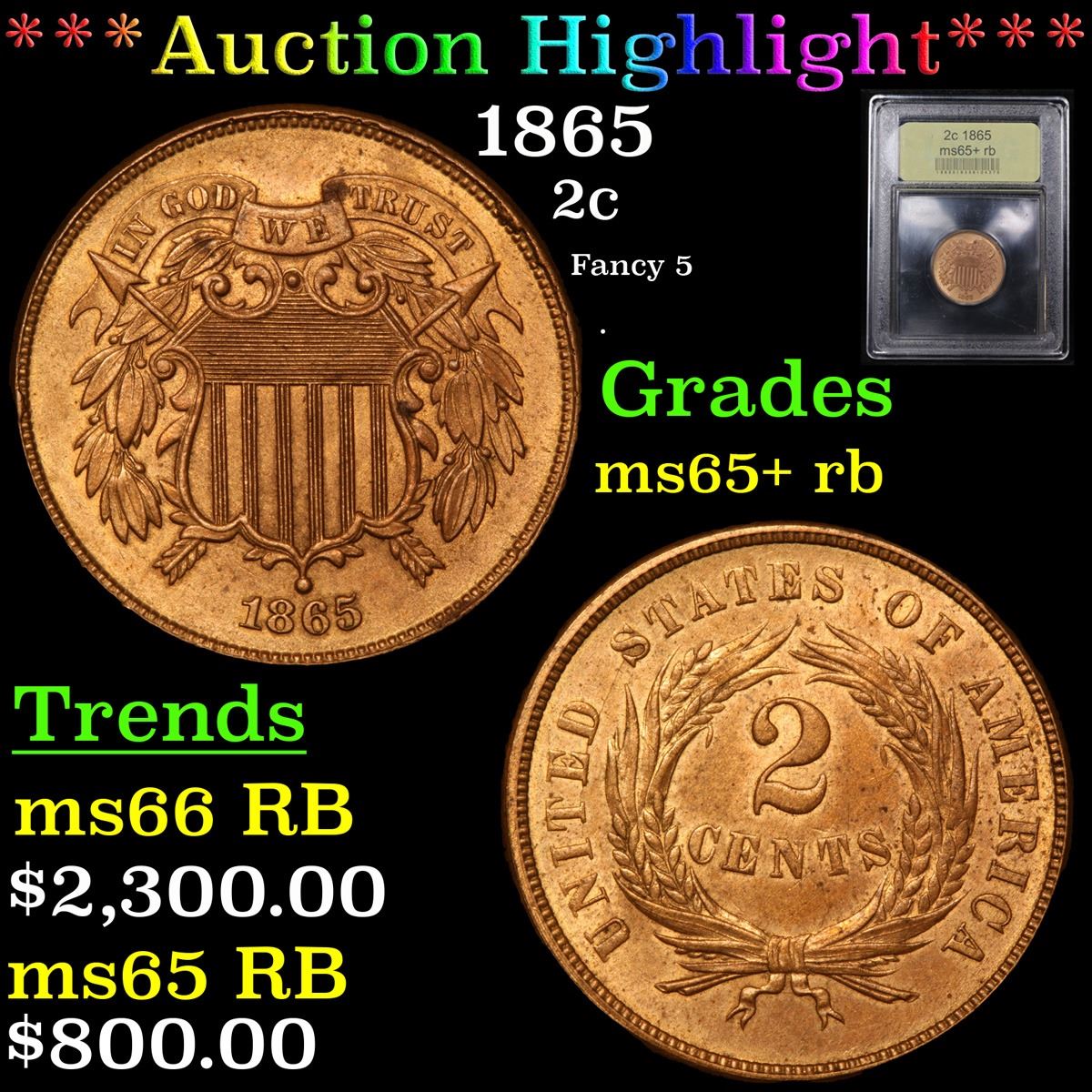 ***Auction Highlight*** 1865 Two Cent Piece 2c Graded Gem+ Unc RB By USCG. A Corey's Pick, Bid to Win, Don't let it get Away, you might not find its equal Coin