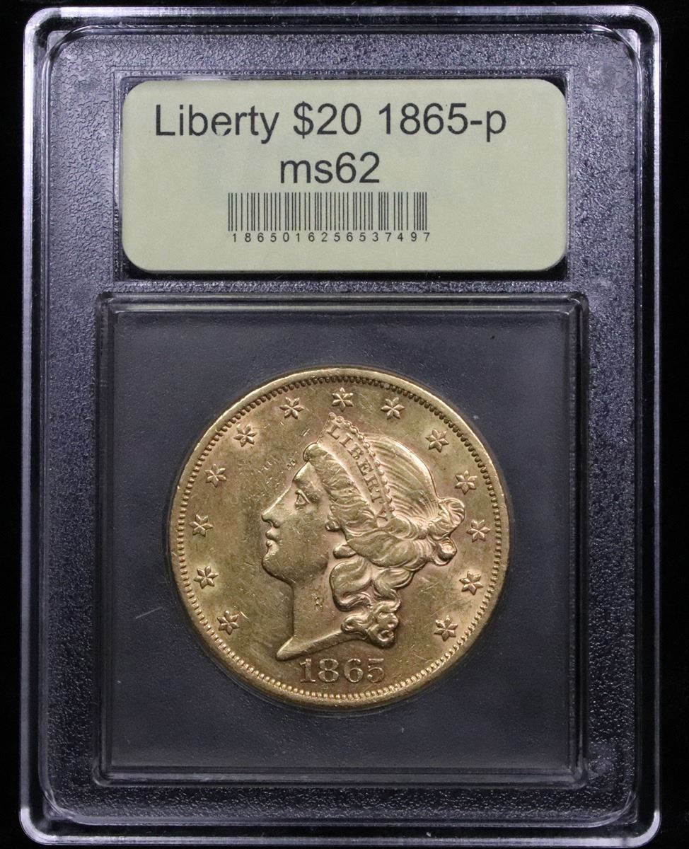 ***Auction Highlight*** 1865-p Trends $3400 in au50; $7500 in au58; $9250 in ms60 Trends $13,000 in ms61; $18,750 in ms62 Gold Liberty Double Eagle $20 Graded Select Unc By USCG. A Corey's Pick, Bid to Win, Don't let it get Away Coin