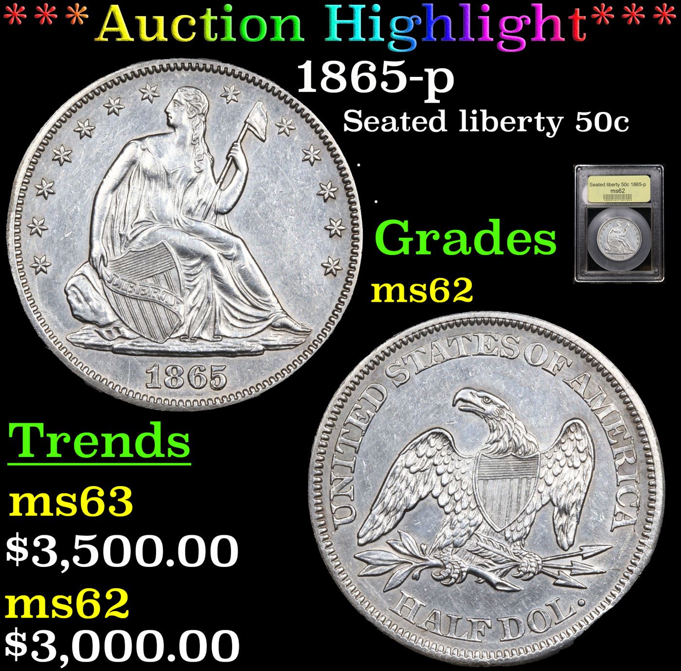 ***Auction Highlight*** 1865-p Seated Half Dollar 50c Graded Select Unc BY USCG.