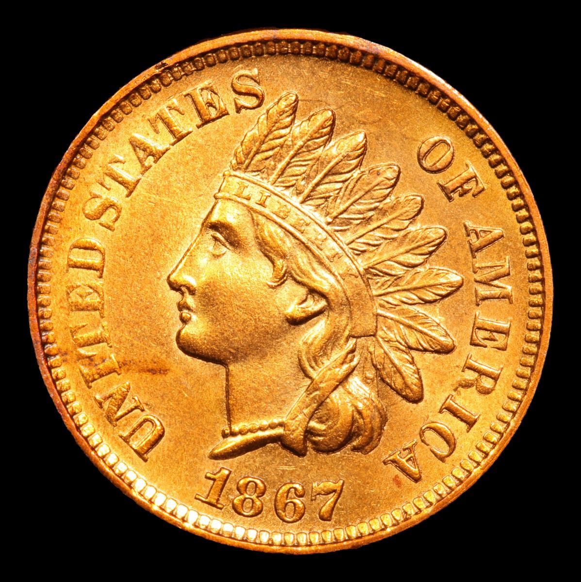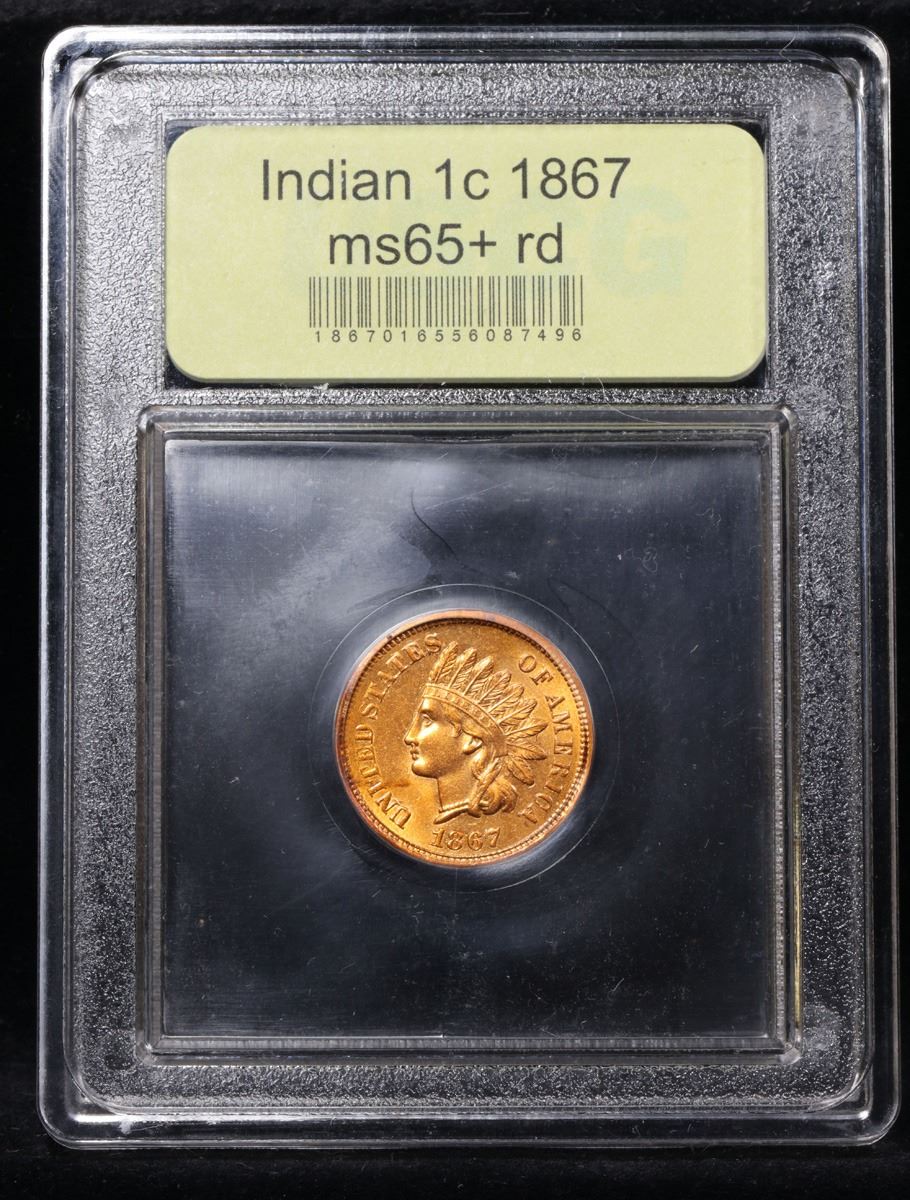 ***Auction Highlight*** 1867 Rare Date . Indian Cent 1c Graded Gem+ Unc RD By USCG. PCGS estimates only 5000 survive in all grades. A very tough date.