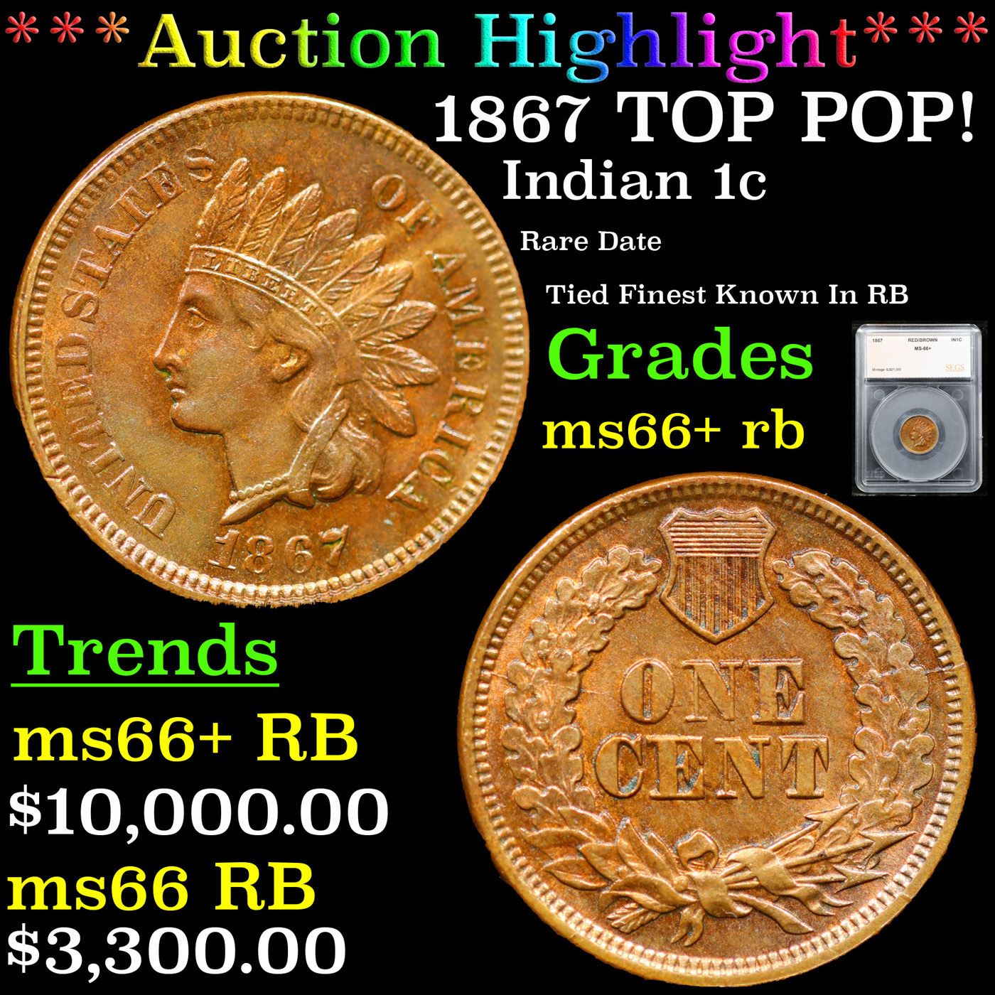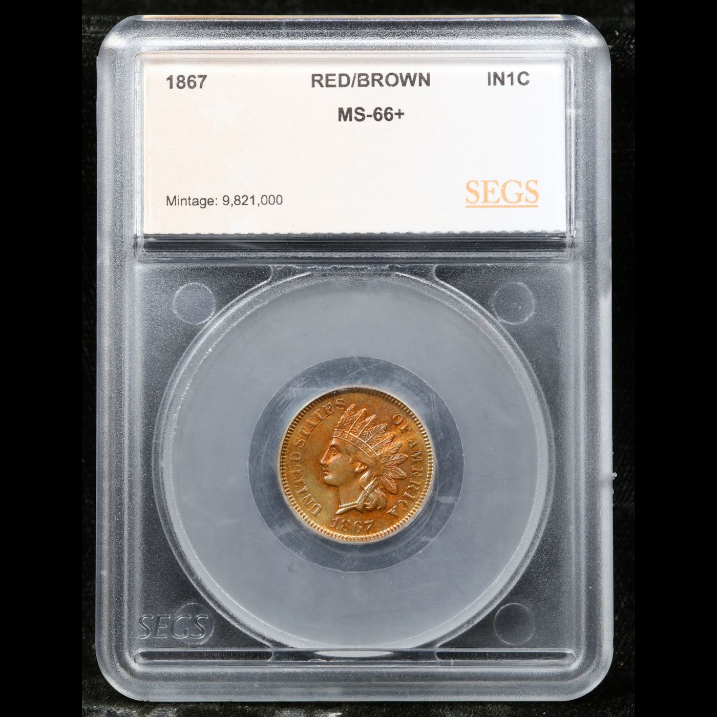 ***Auction Highlight*** 1867 TOP POP! Indian Cent 1c Graded ms66+ rb By SEGS. PCGS estimates only 5000 survive in all grades. A very tough date.