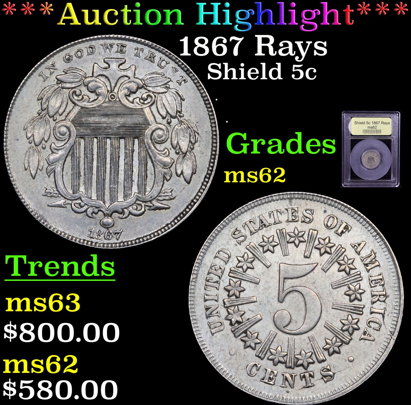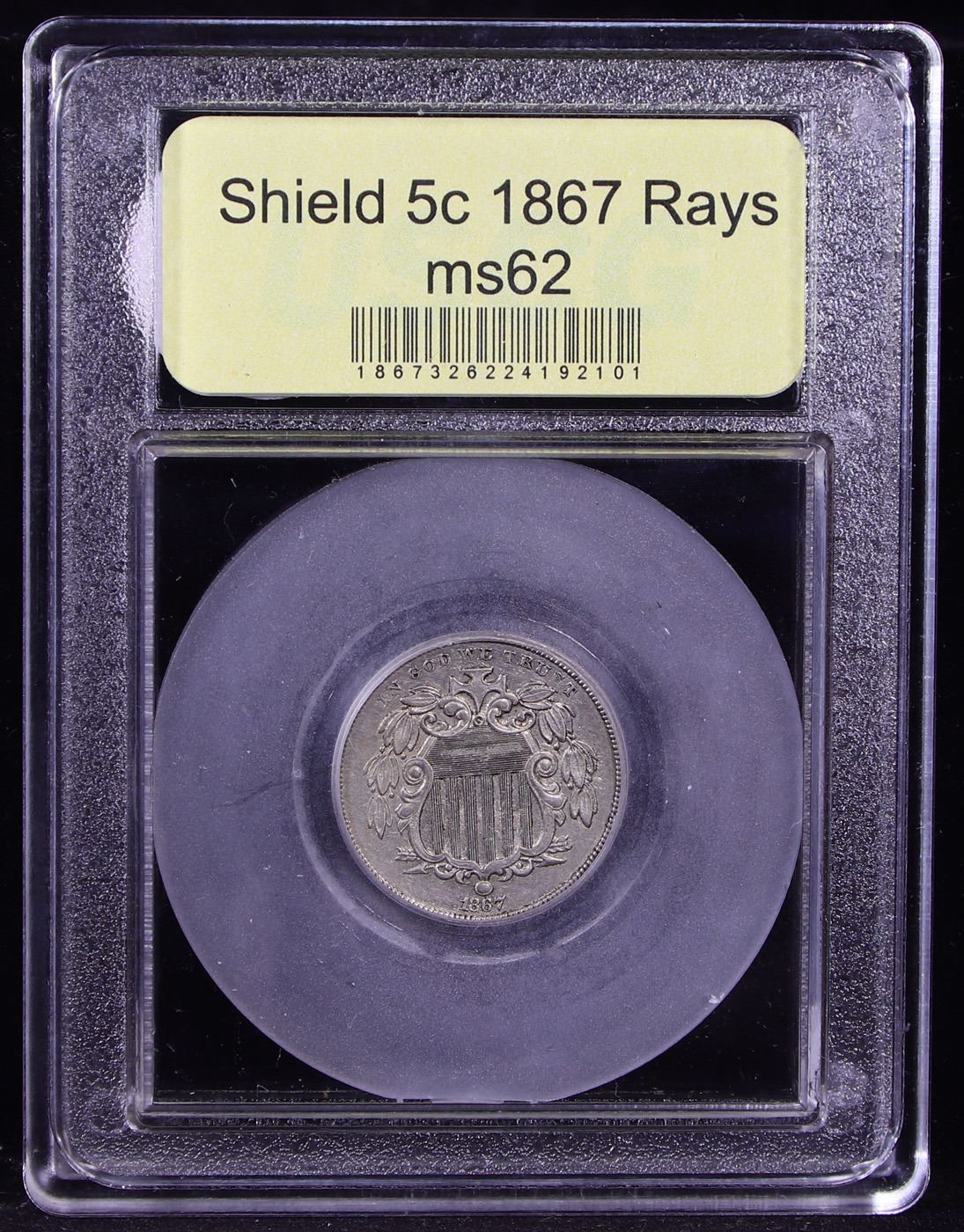 ***Auction Highlight*** 1867 Rays Shield Nickel 5c Graded Select Unc By USCG.