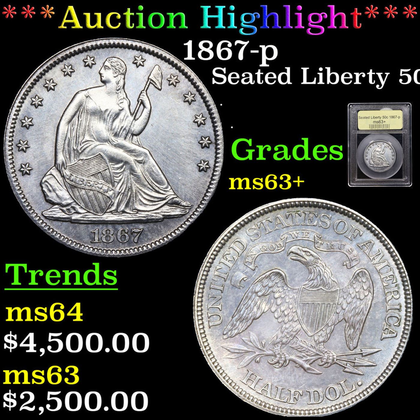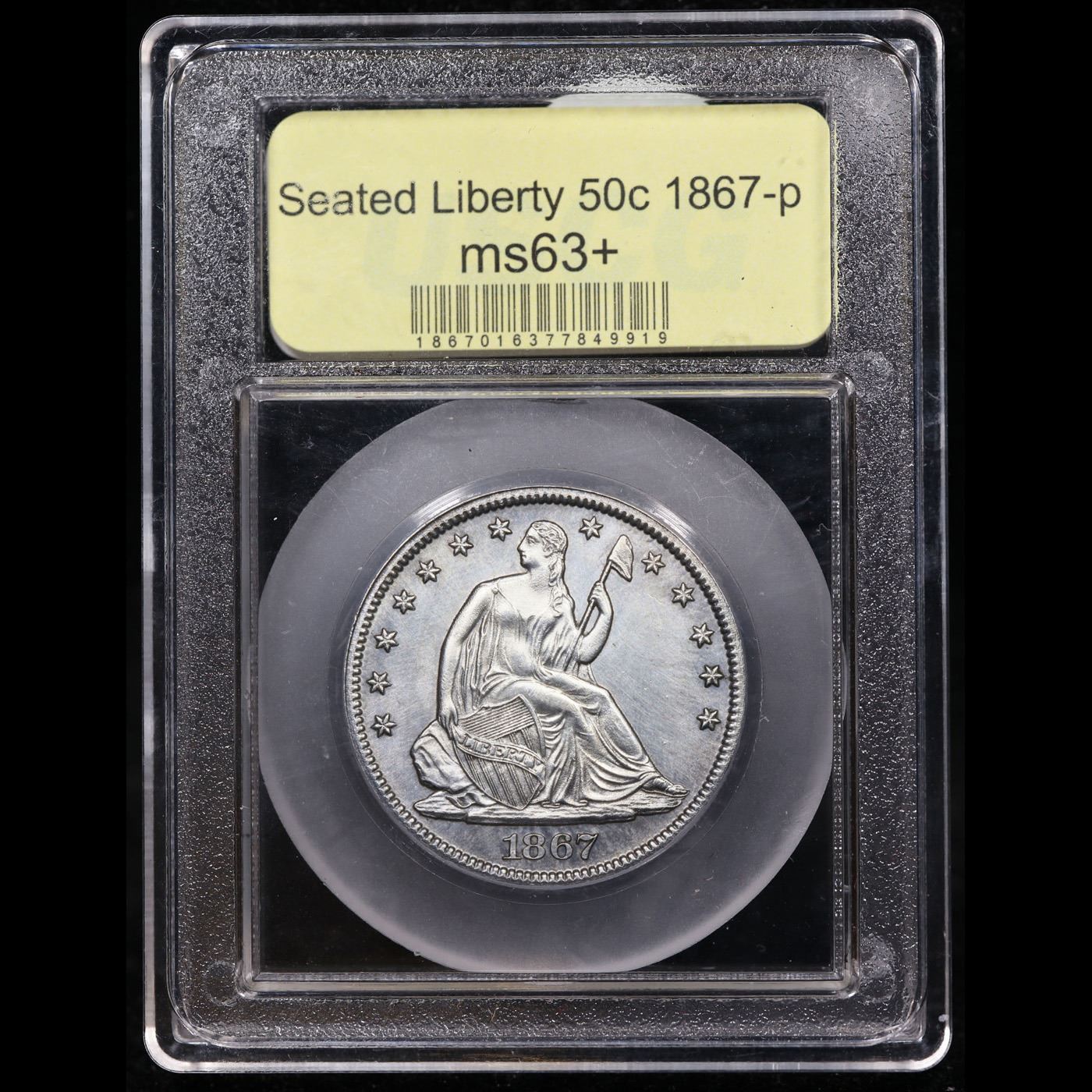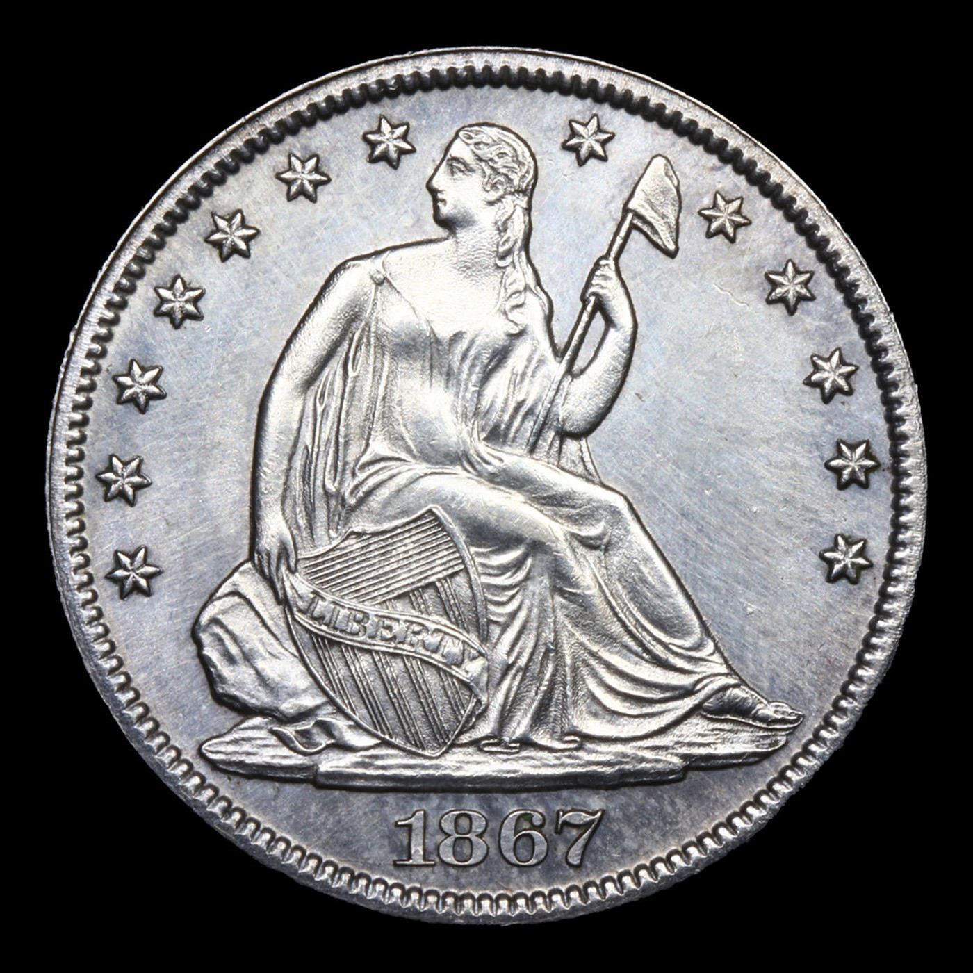 ***Auction Highlight*** 1867-p Seated Half Dollar 50c Graded Select+ Unc BY USCG. A Key Date's Pick, Bid to Win Coin