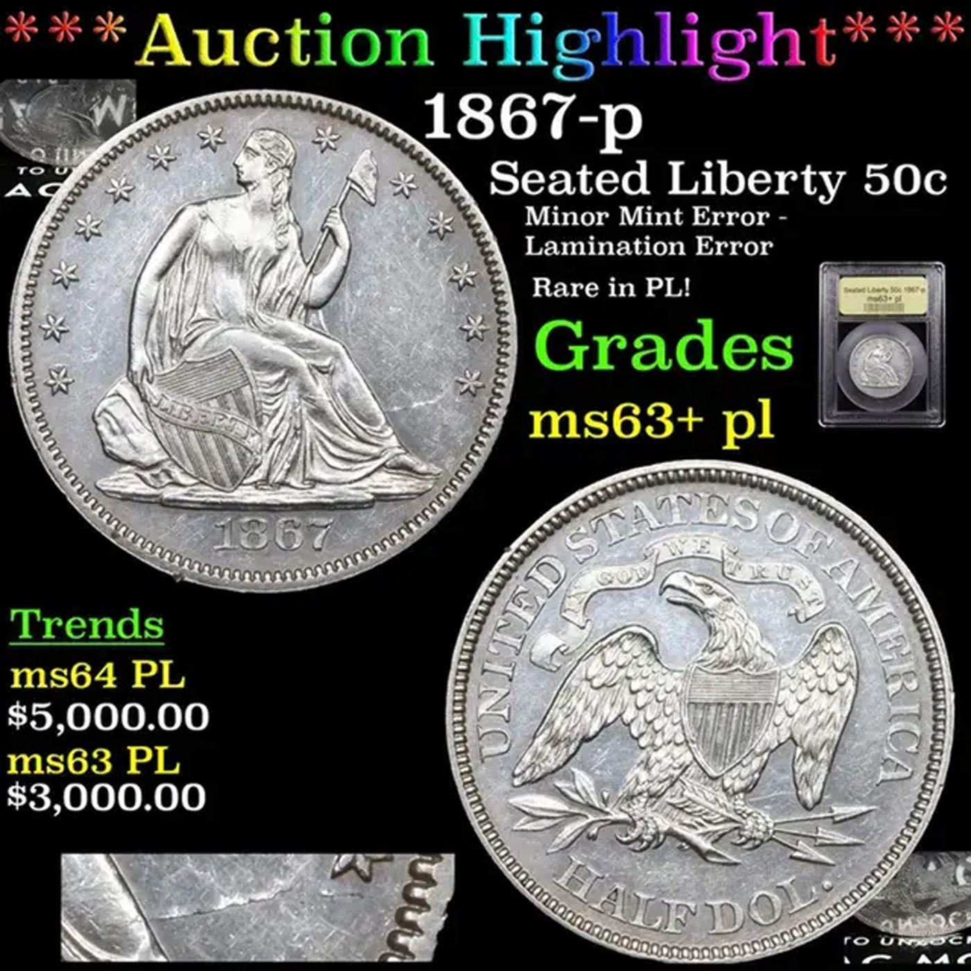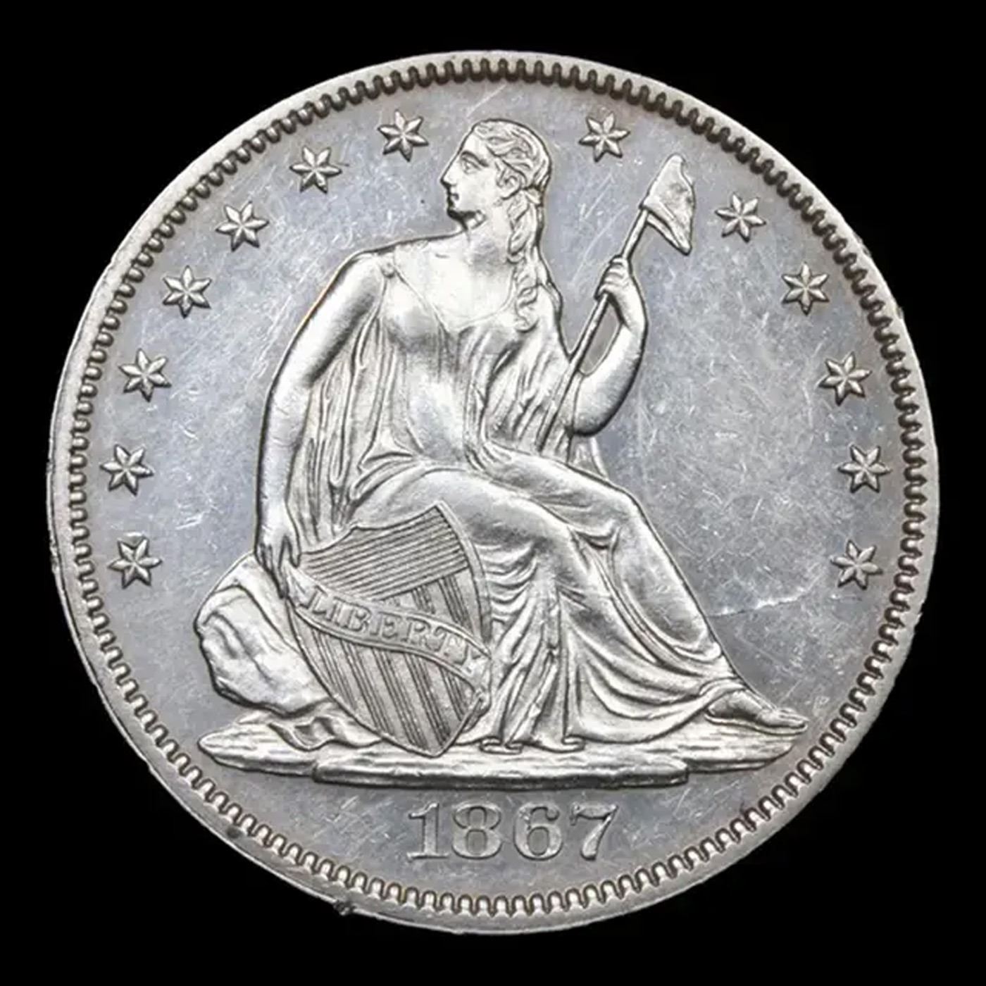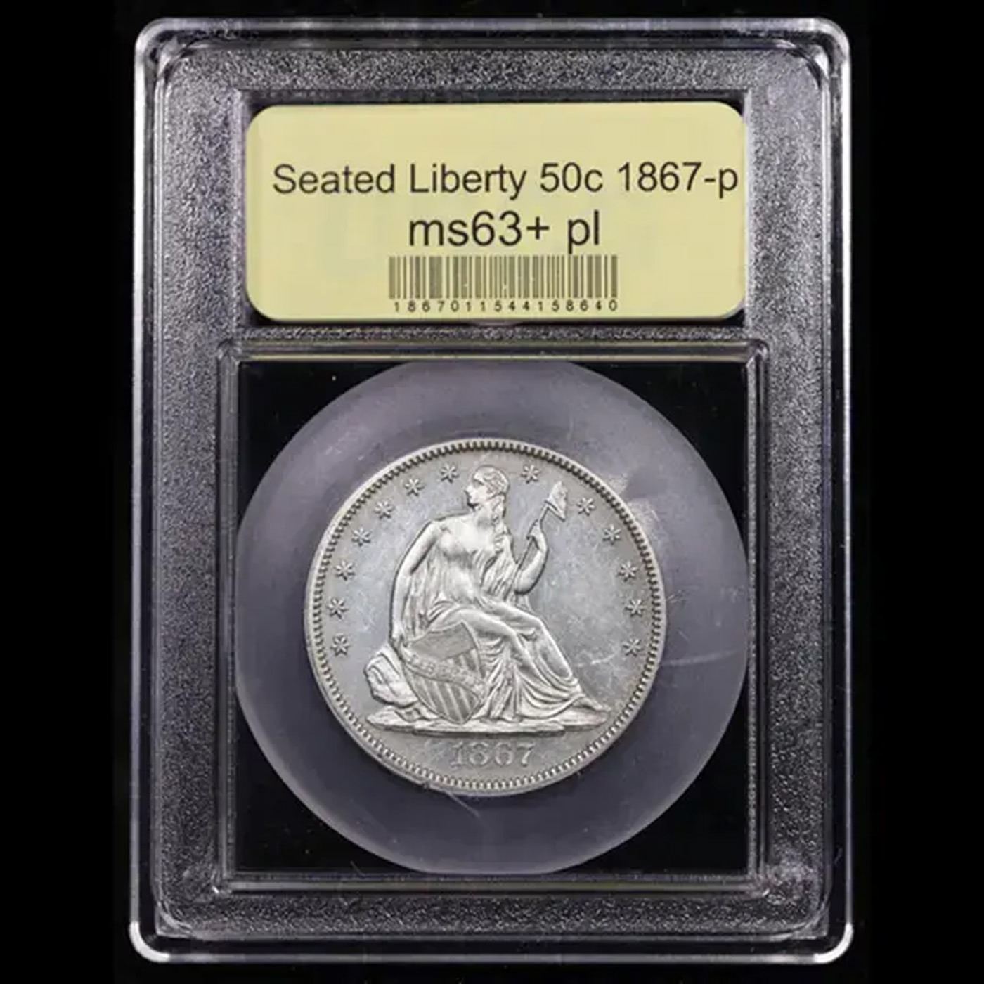 ***Auction Highlight*** 1867-p Seated Half Dollar 50c Graded Select Unc+ PL BY USCG.