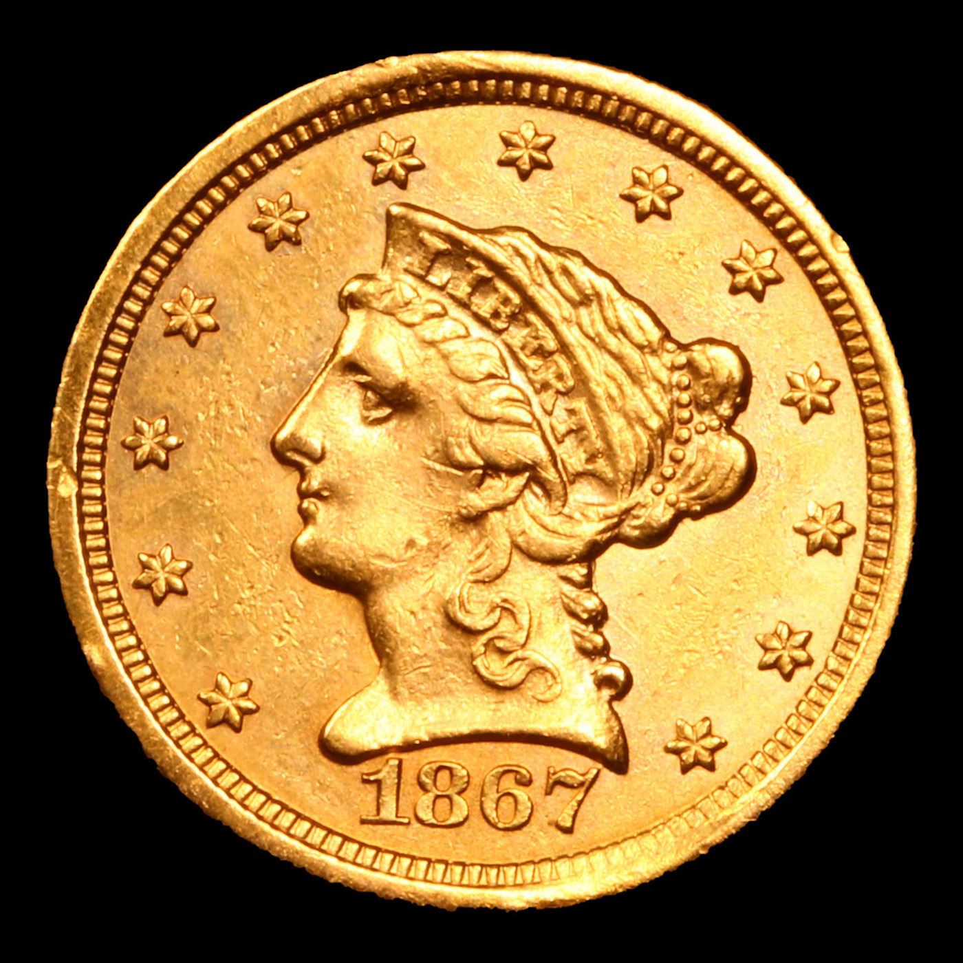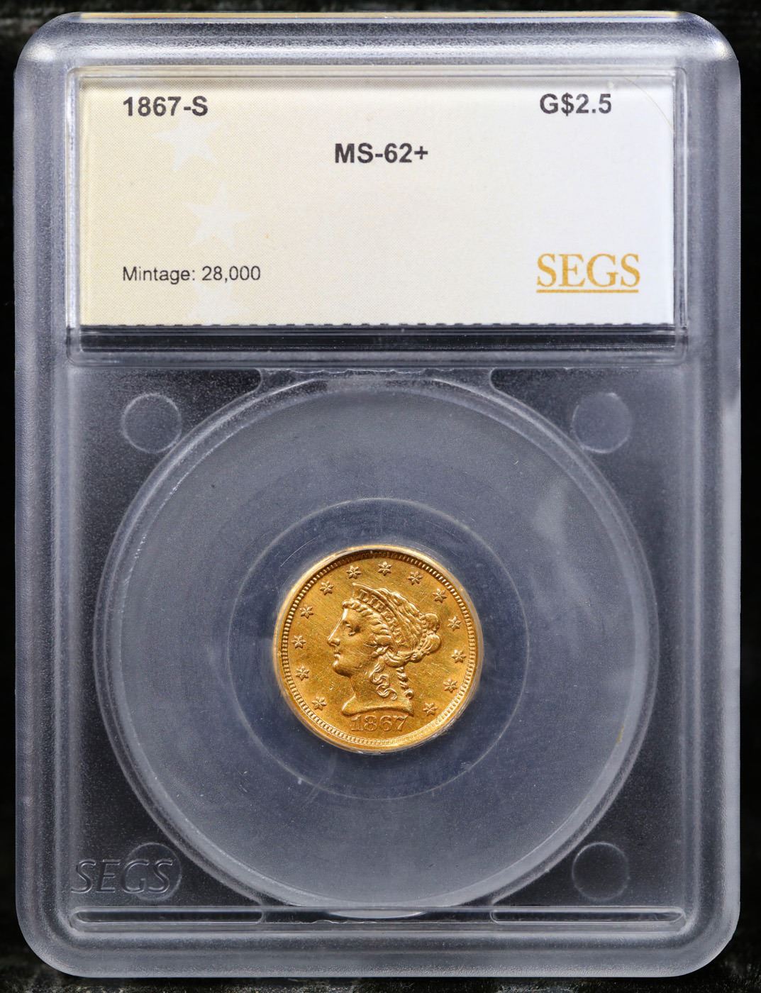 ***Auction Highlight*** 1867-s Gold Liberty Quarter Eagle $2 1/2 Graded ms62+ By SEGS. A Corey's Pick, Bid to Win, Don't let it get Away, you might not find its equal Coin. I give this coin my highest recommendation