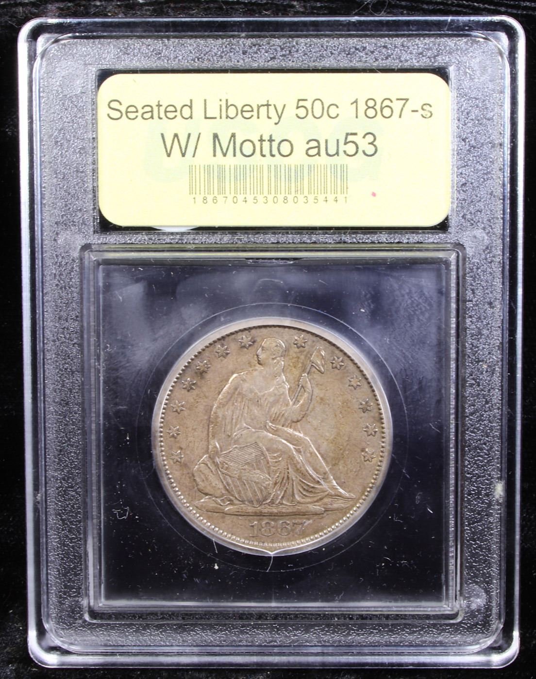 ***Auction Highlight*** 1867-s W/ Motto Seated Half Dollar 50c Graded Select AU By USCG (fc)