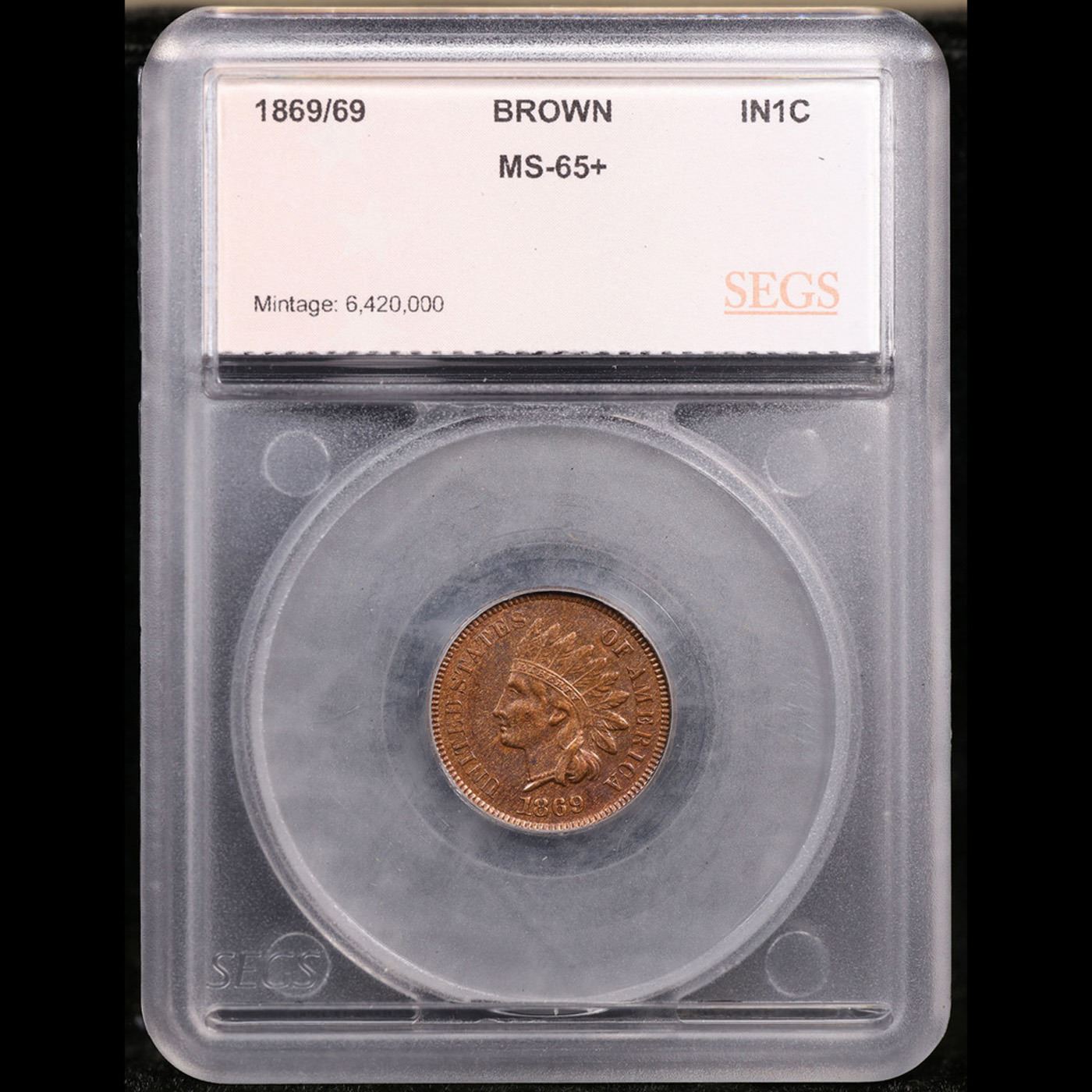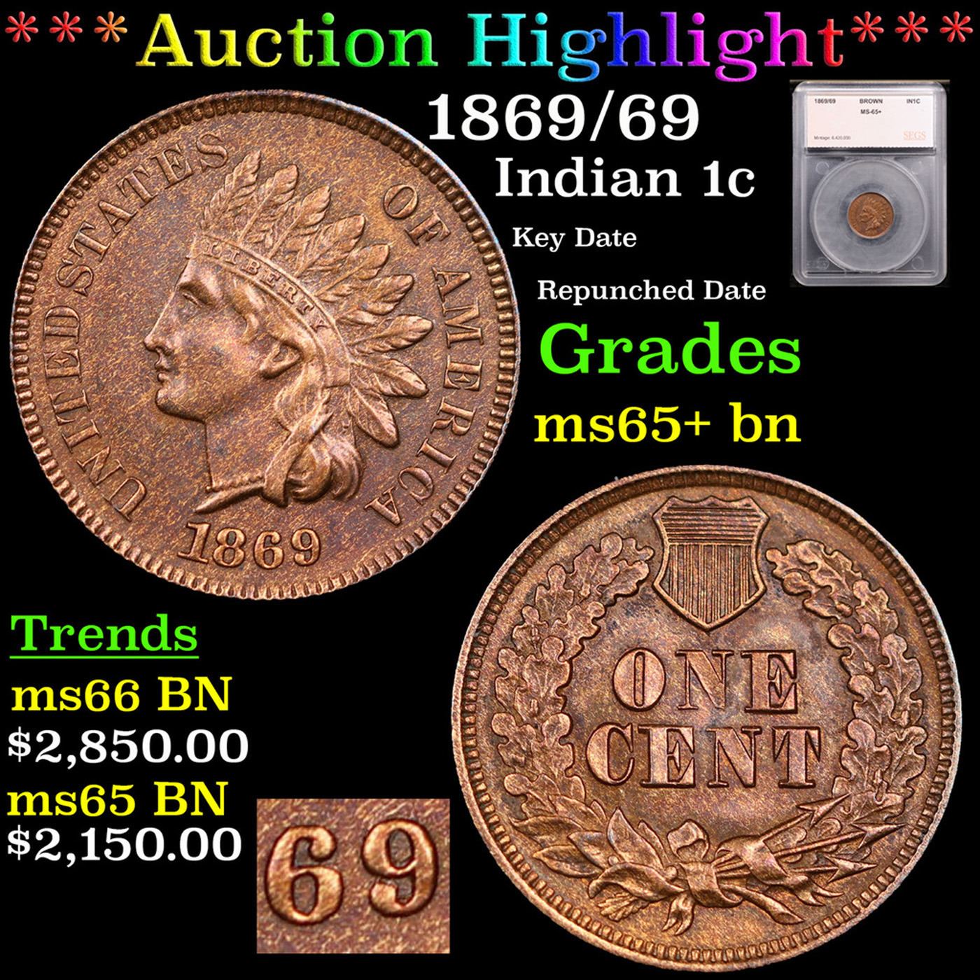 ***Auction Highlight*** 1869/69 Indian Cent 1c Graded ms65+ bn By SEGS. A Corey's Pick, Bid to Win Coin