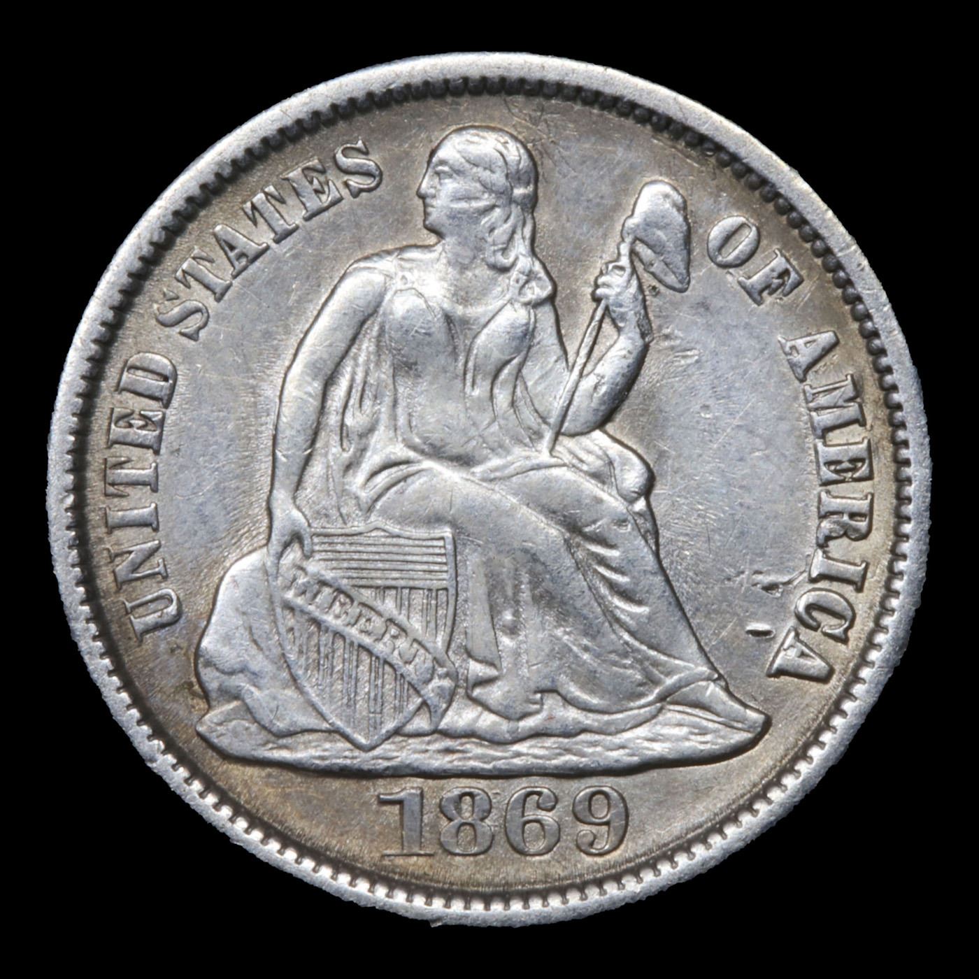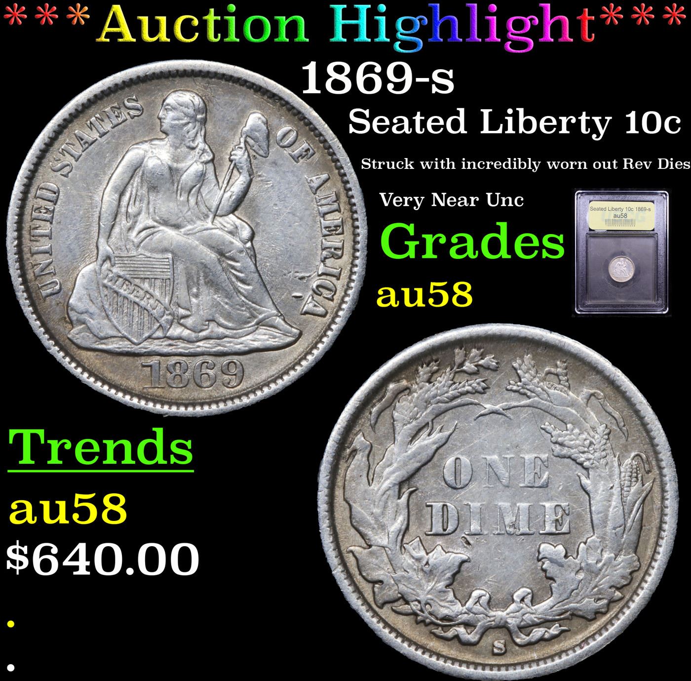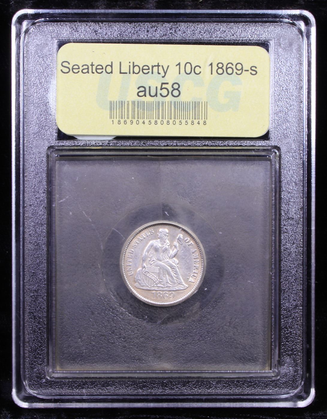 ***Auction Highlight*** 1869-s Seated Liberty Dime 10c Graded Choice AU/BU Slider By USCG. A Corey's Pick, Bid to Win Coin
