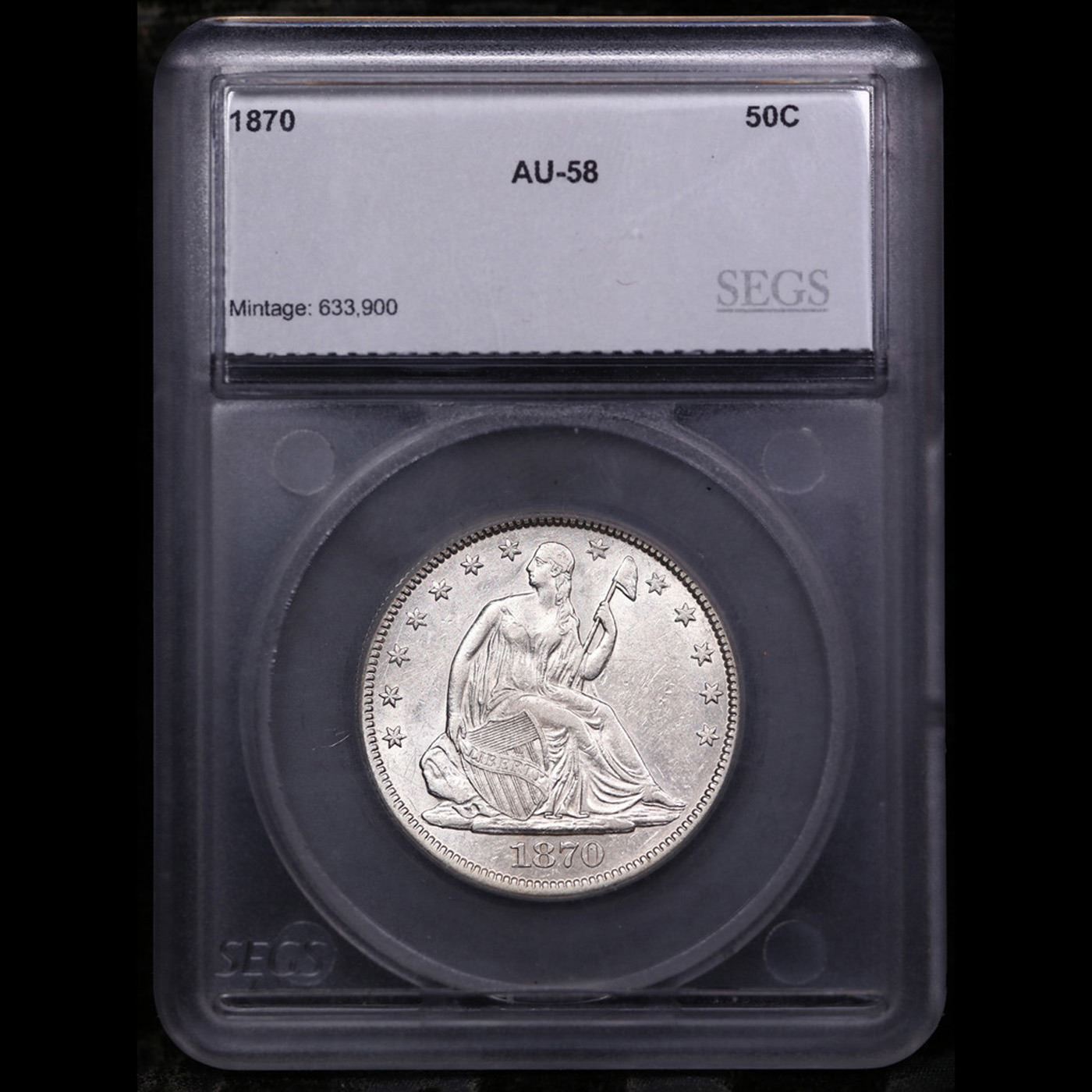 ***Auction Highlight*** 1870-p Seated Half Dollar 50c Graded au58 BY SEGS.