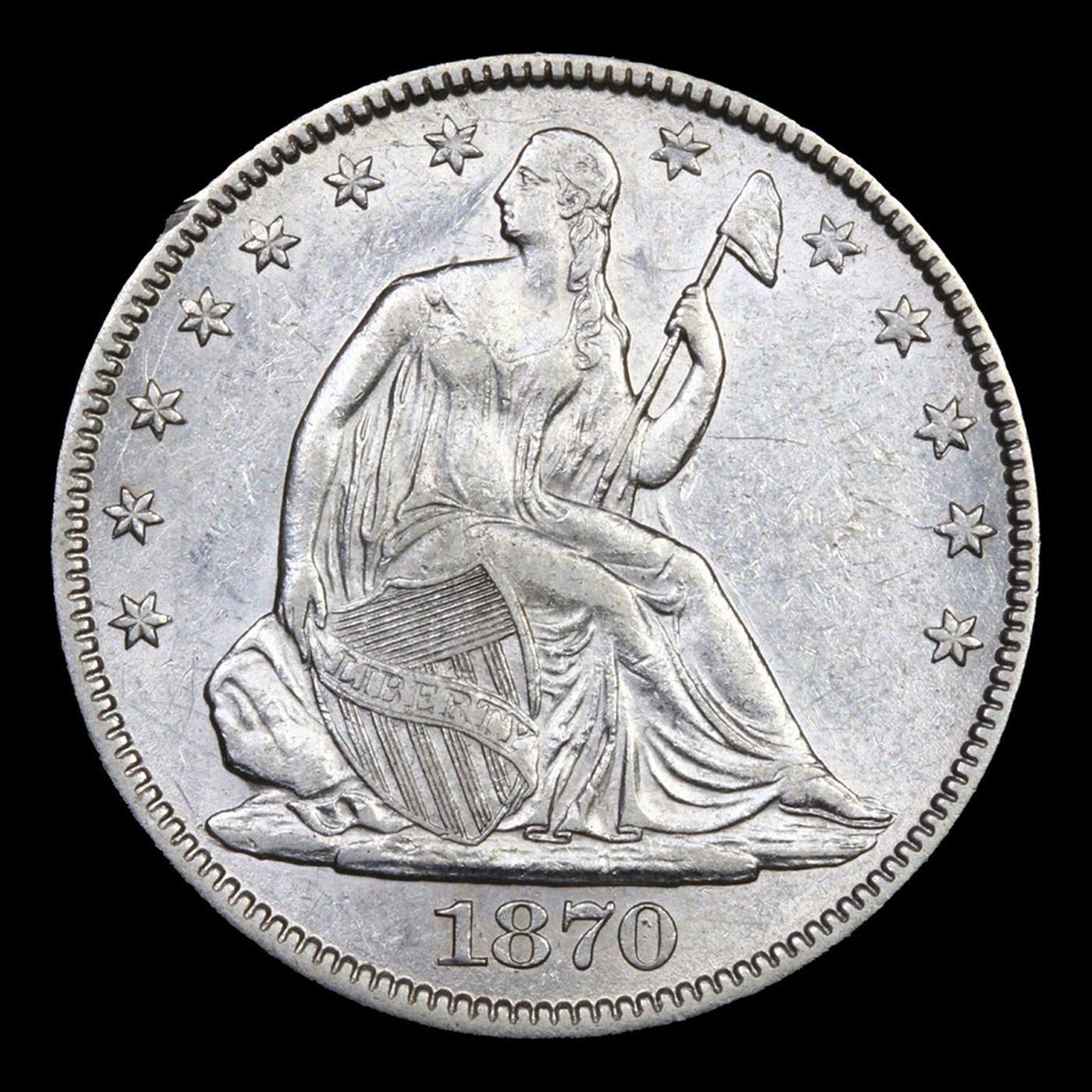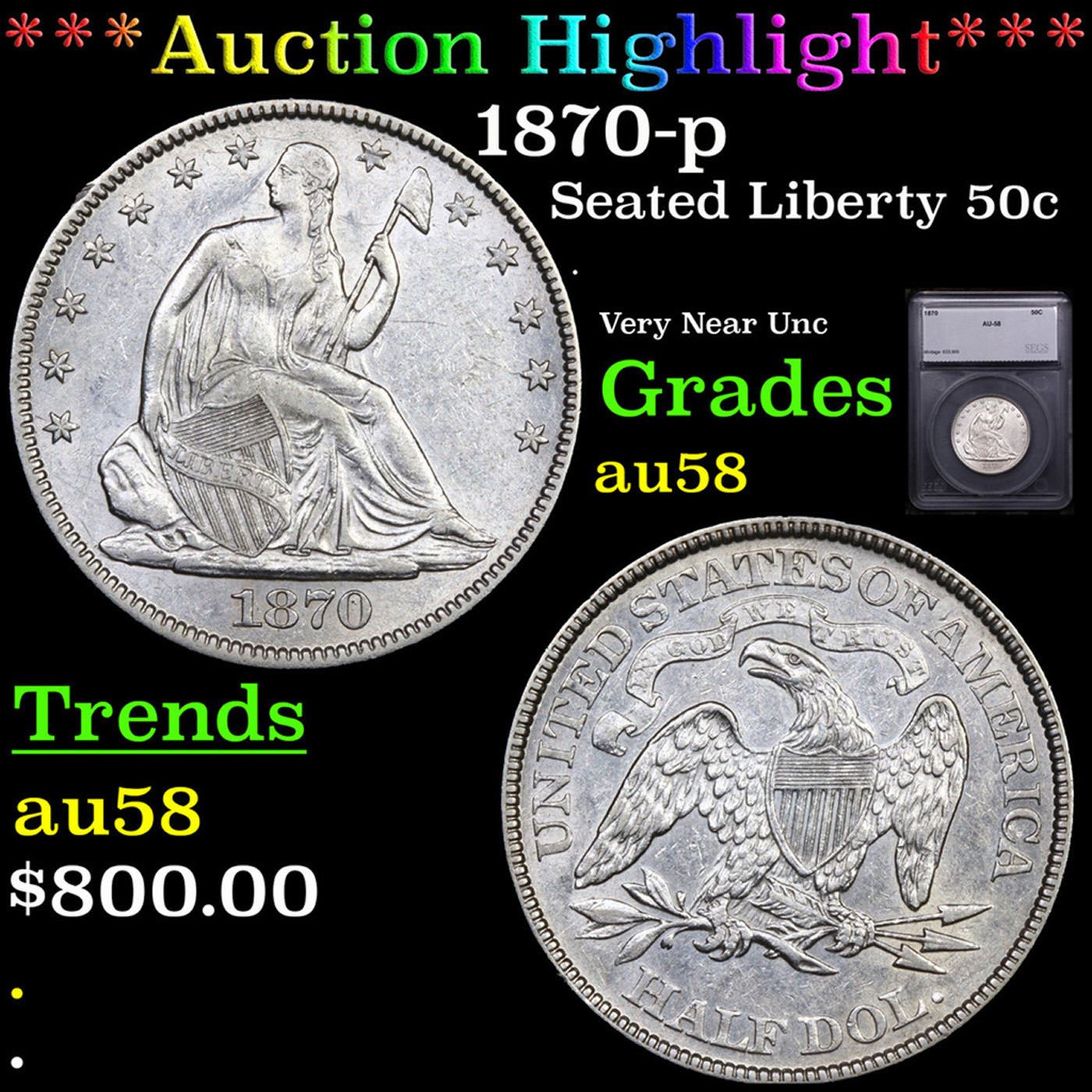 ***Auction Highlight*** 1870-p Seated Half Dollar 50c Graded au58 BY SEGS.