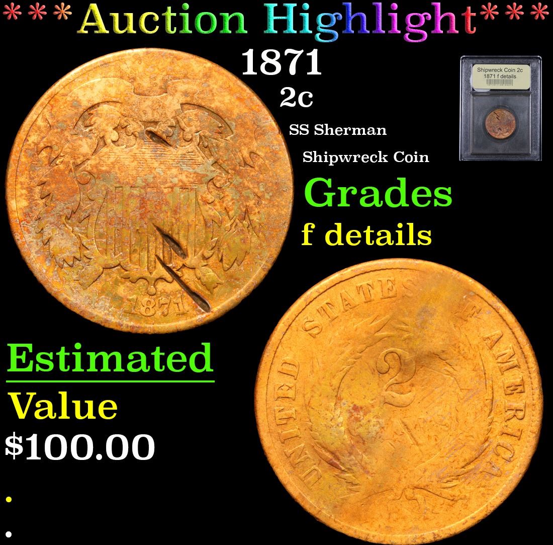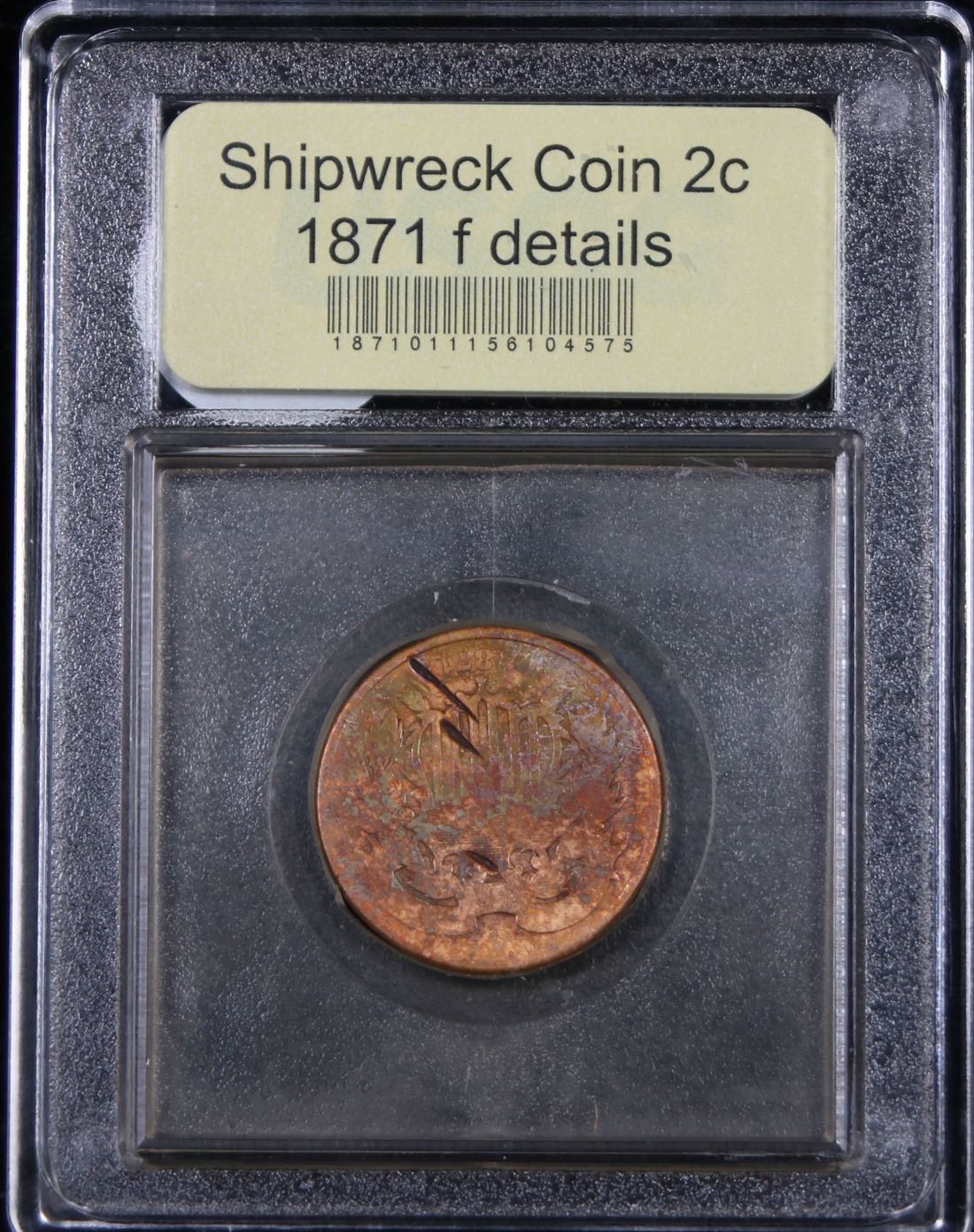 *Auction Highlight* 1871 Shipwreck Coin SS Sherman Two Cent Piece 2c Graded f details By USCG. The SS Sherman, sunk on January 9, 1874 off the North Carolina Coast