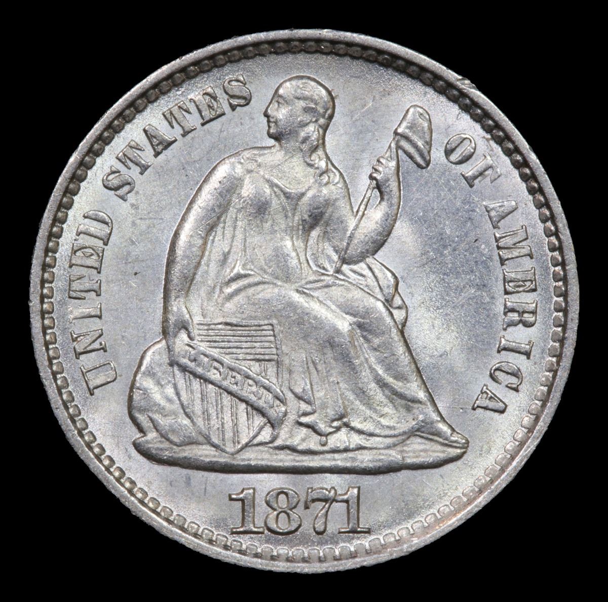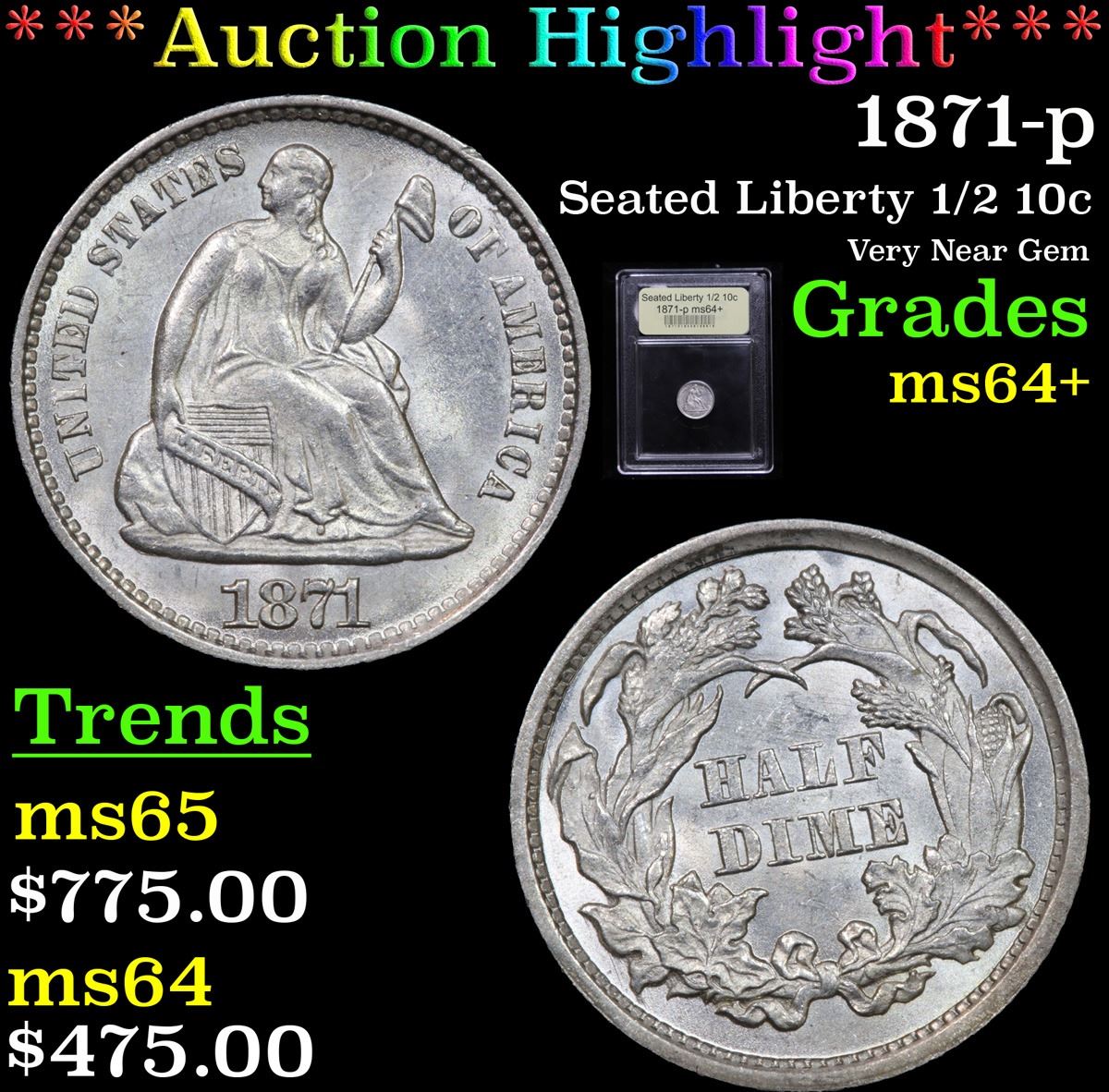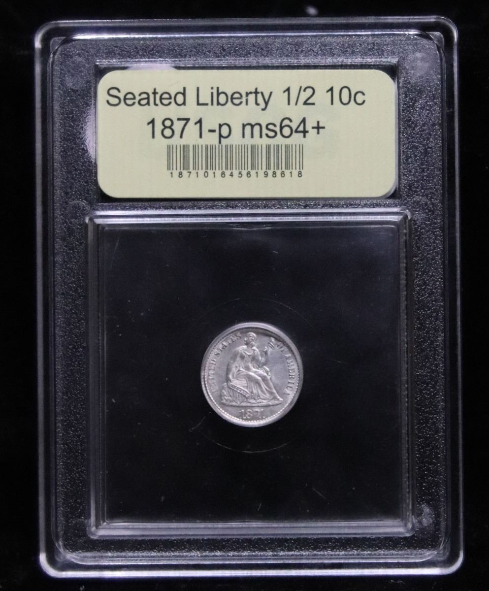 ***Auction Highlight*** 1871-p . Very Near Gem Seated Liberty Half Dime 1/2 10c Graded Choice+ Unc By USCG. A Corey's Pick, Bid to Win Coin
