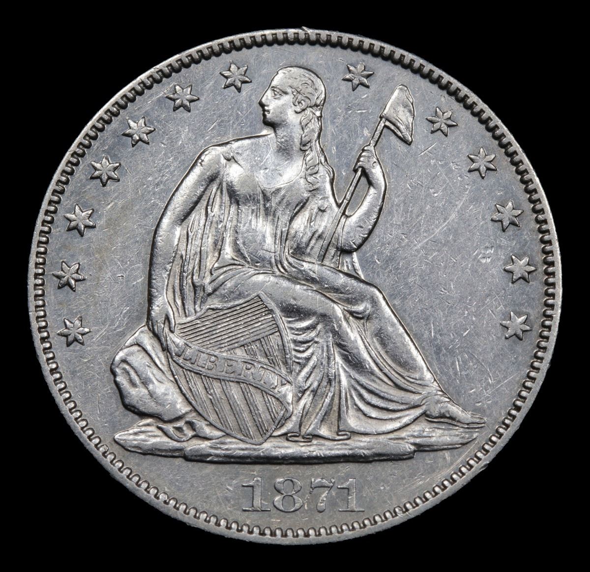 ***Auction Highlight*** 1871-p WB-101 Seated Half Dollar 50c Graded Choice AU/BU Slider By USCG (fc)