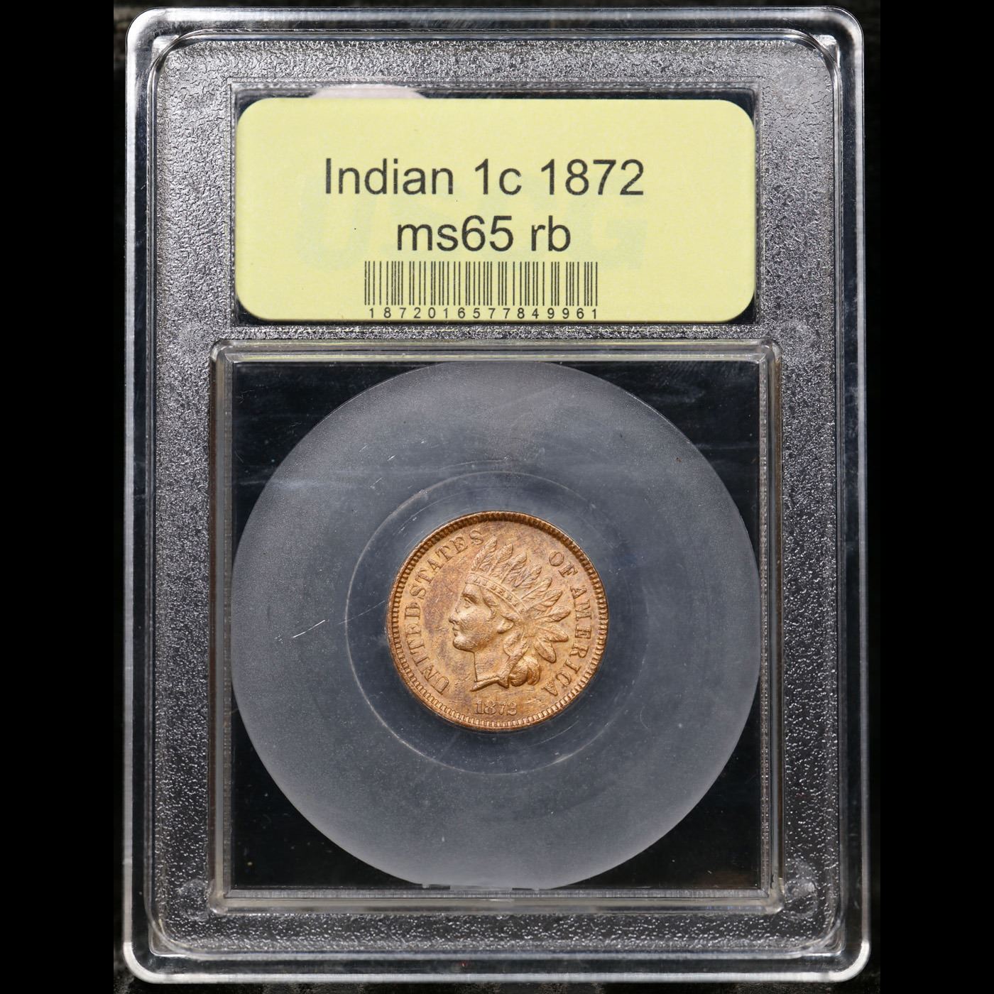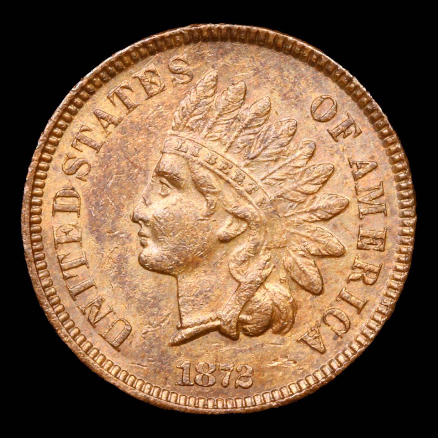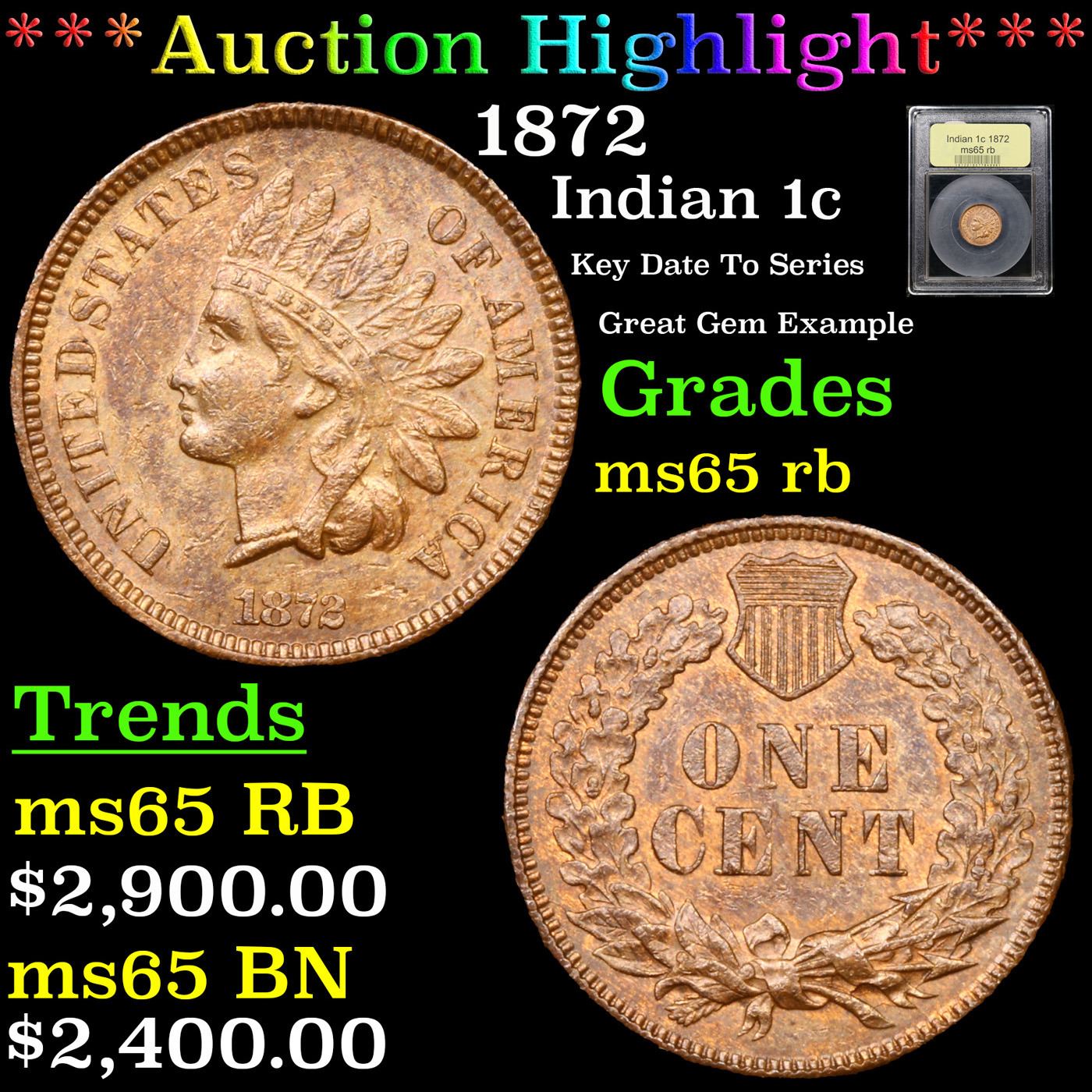 ***Auction Highlight*** 1872 Indian Cent 1c Graded GEM Unc RB BY USCG. Per PCGS : "The 1872 Indian Cent has one of the lowest mintages in the series. It is very similar to the 1871, even though the 1871 has a lower mintage the 1872 seems to carry a higher premium in most grades. A semi key date to the indian Cent series with approximately 5,000 coins in existence, in all grades combined. Making a very tough issue."