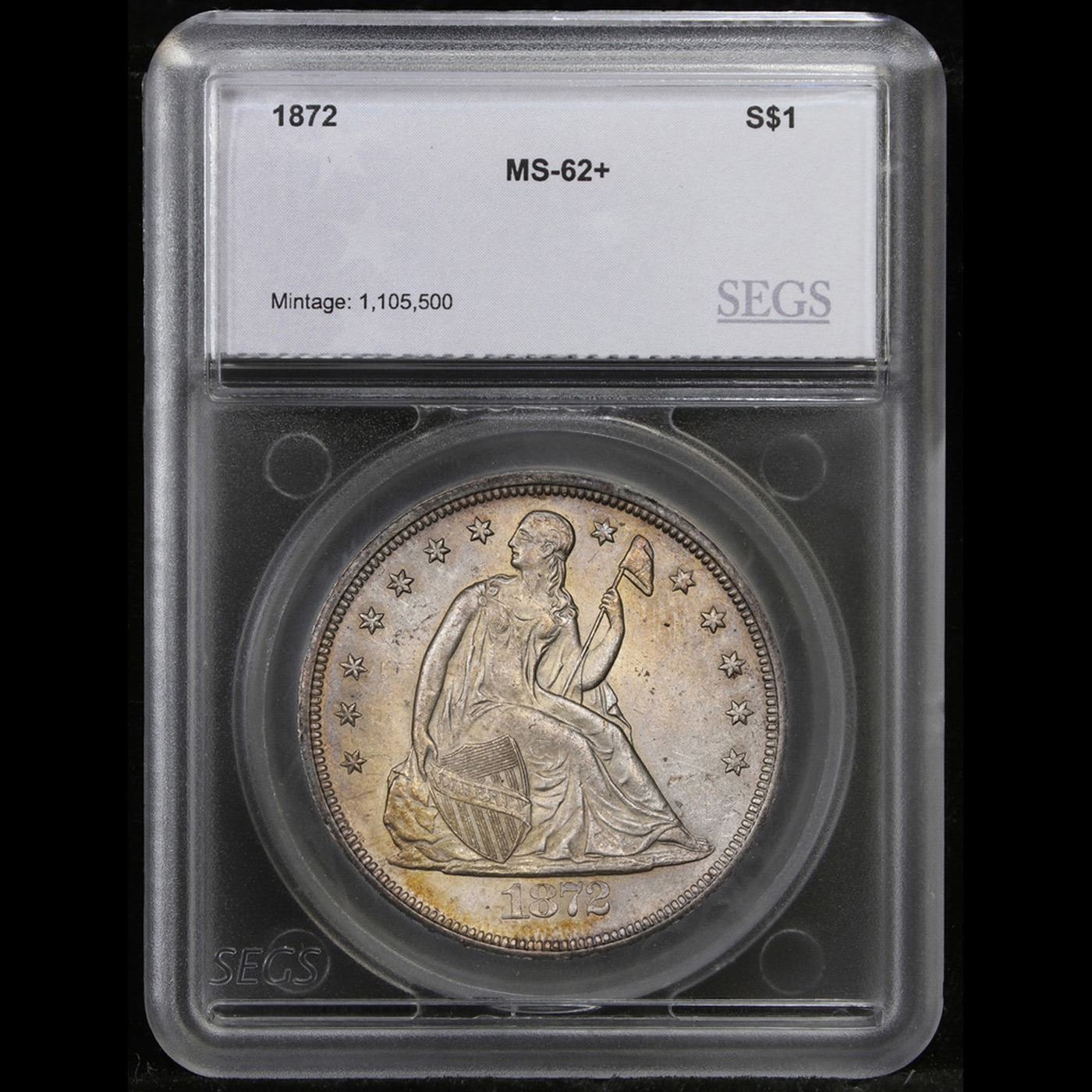 ***Auction Highlight*** 1872-p Seated Liberty Dollar 1 Graded ms62+ by SEGS. A Corey's Pick, Bid to Win Coin