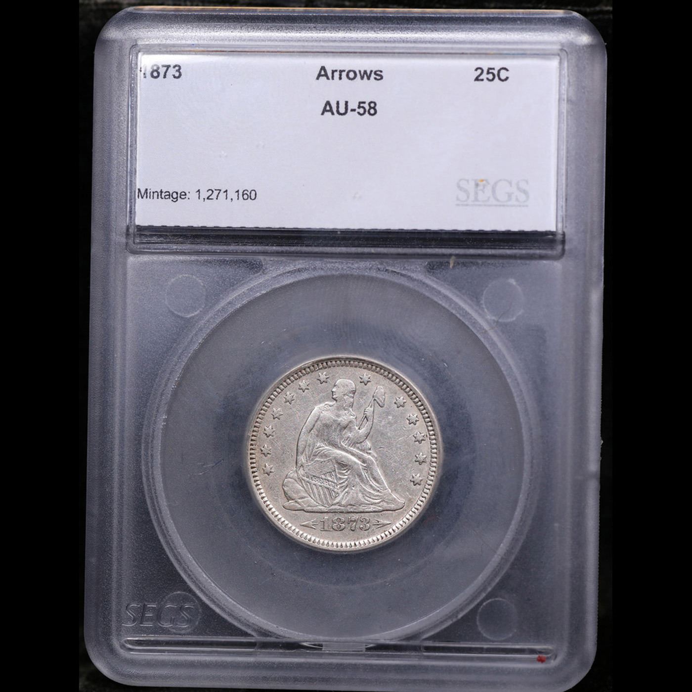 ***Auction Highlight*** 1873 Arrows Seated Liberty Quarter 25c Grades Choice AU/BU Slider BY SEGS (f