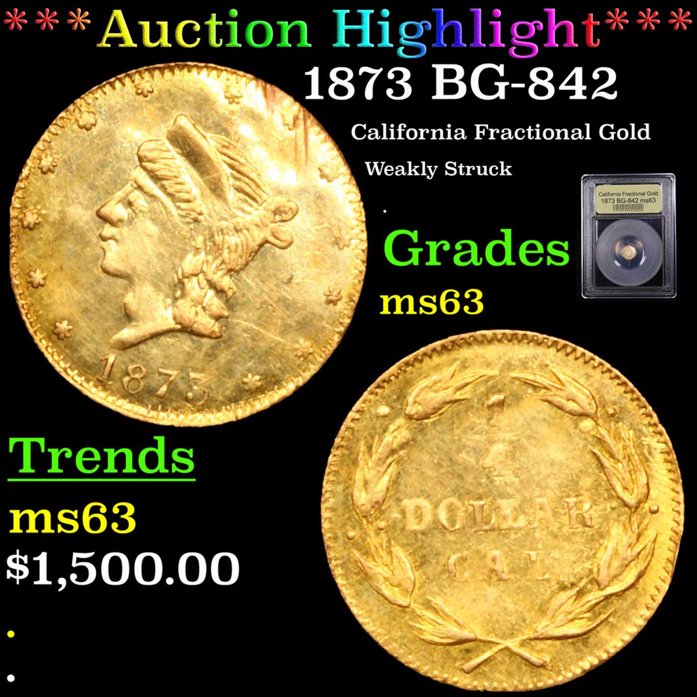 ***Auction Highlight*** 1873 BG-842 California Fractional Gold 25c Graded Select Unc BY USCG. 0