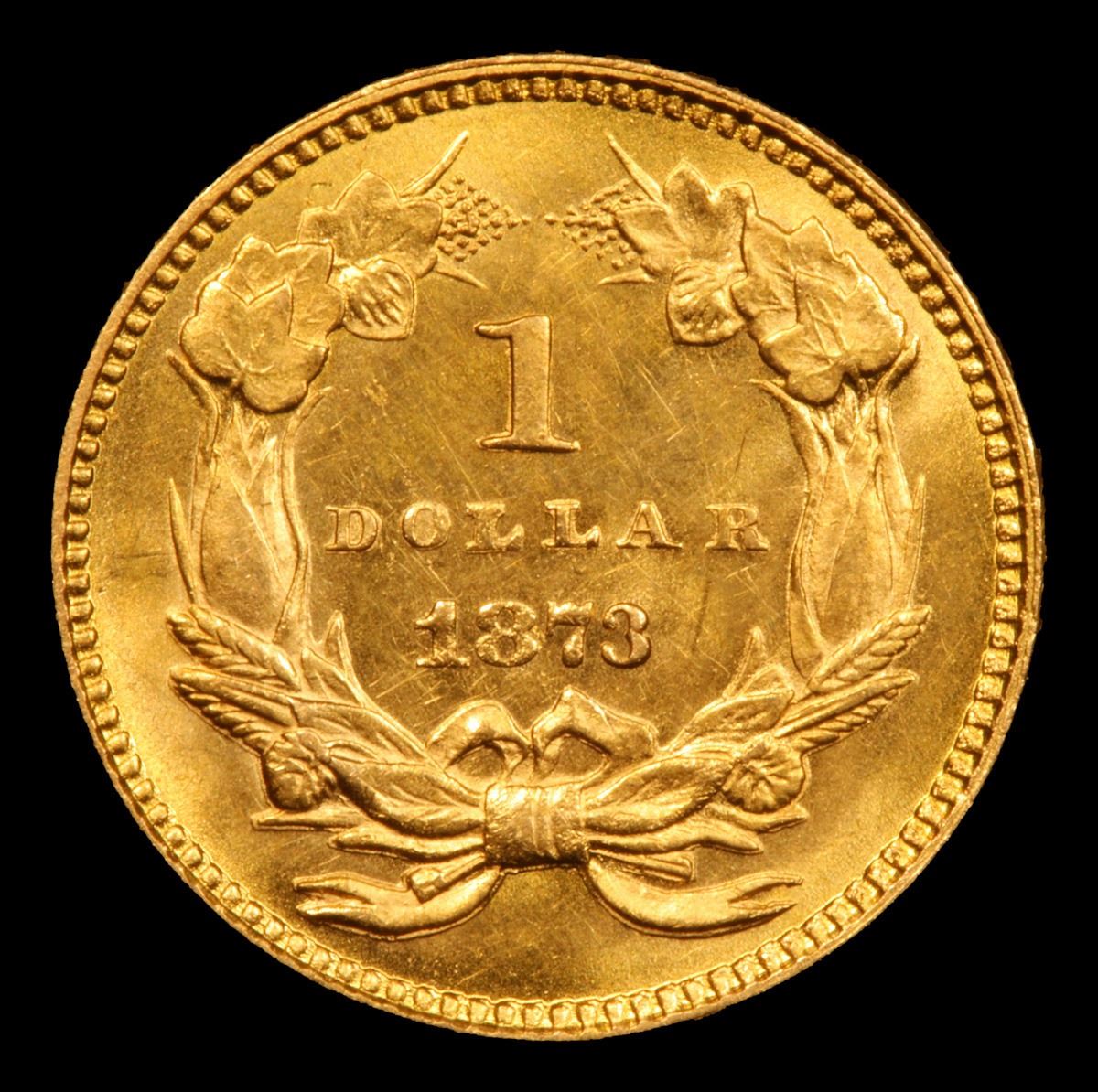 ***Auction Highlight*** 1873 OPEN 3 Gold Dollar $1 Graded Choice Unc BY USCG.