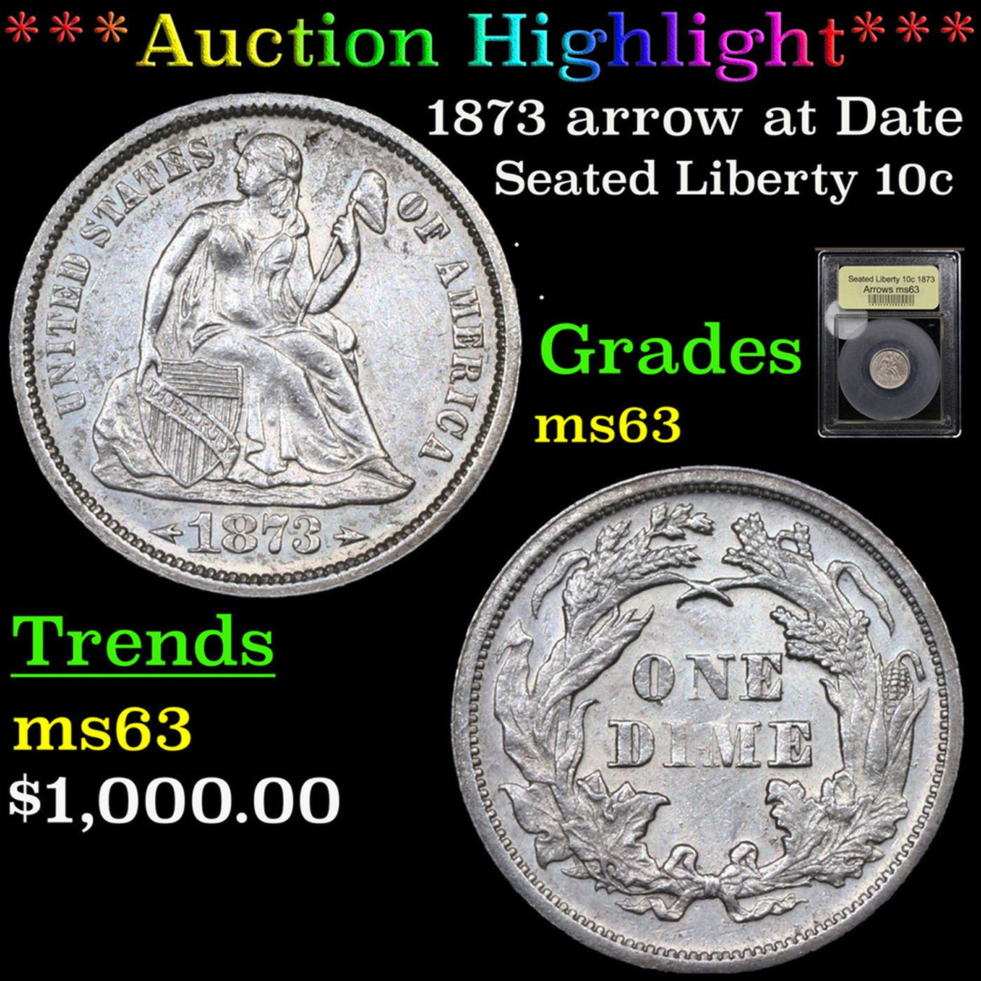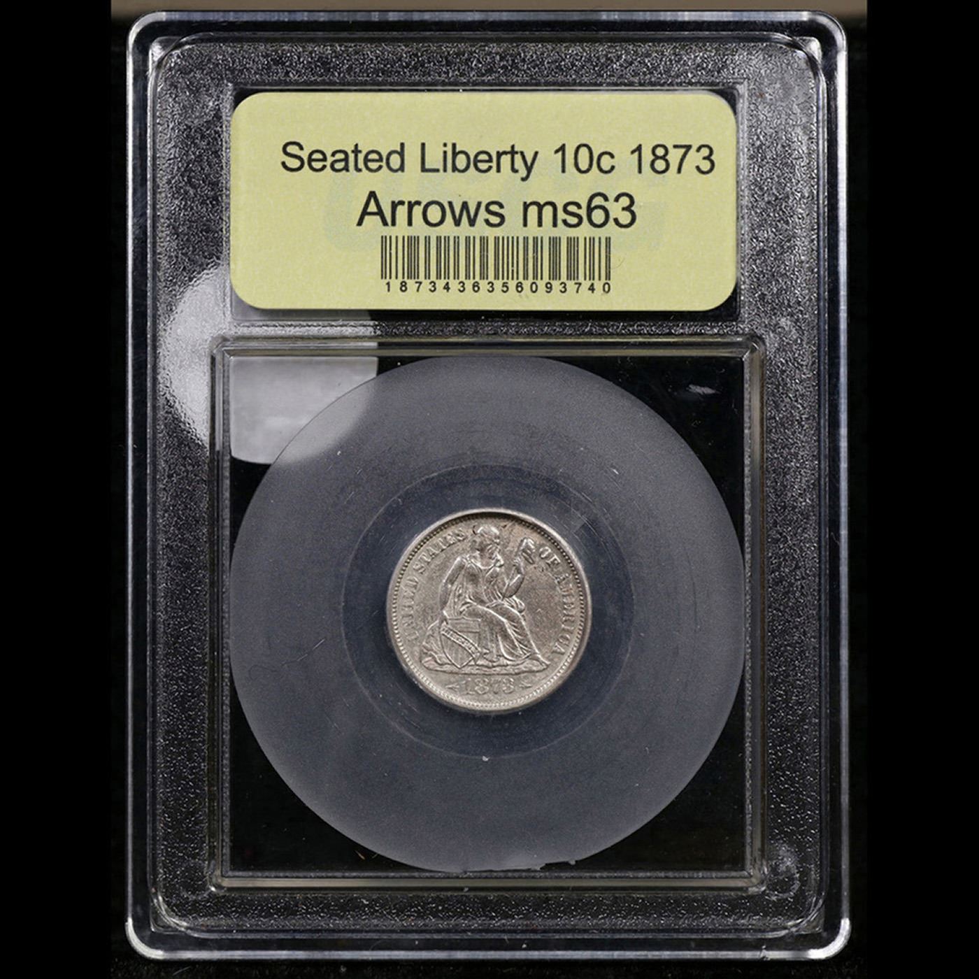 ***Auction Highlight*** 1873 arrow at Date Seated Liberty Dime 10c Graded Select Unc By USCG.