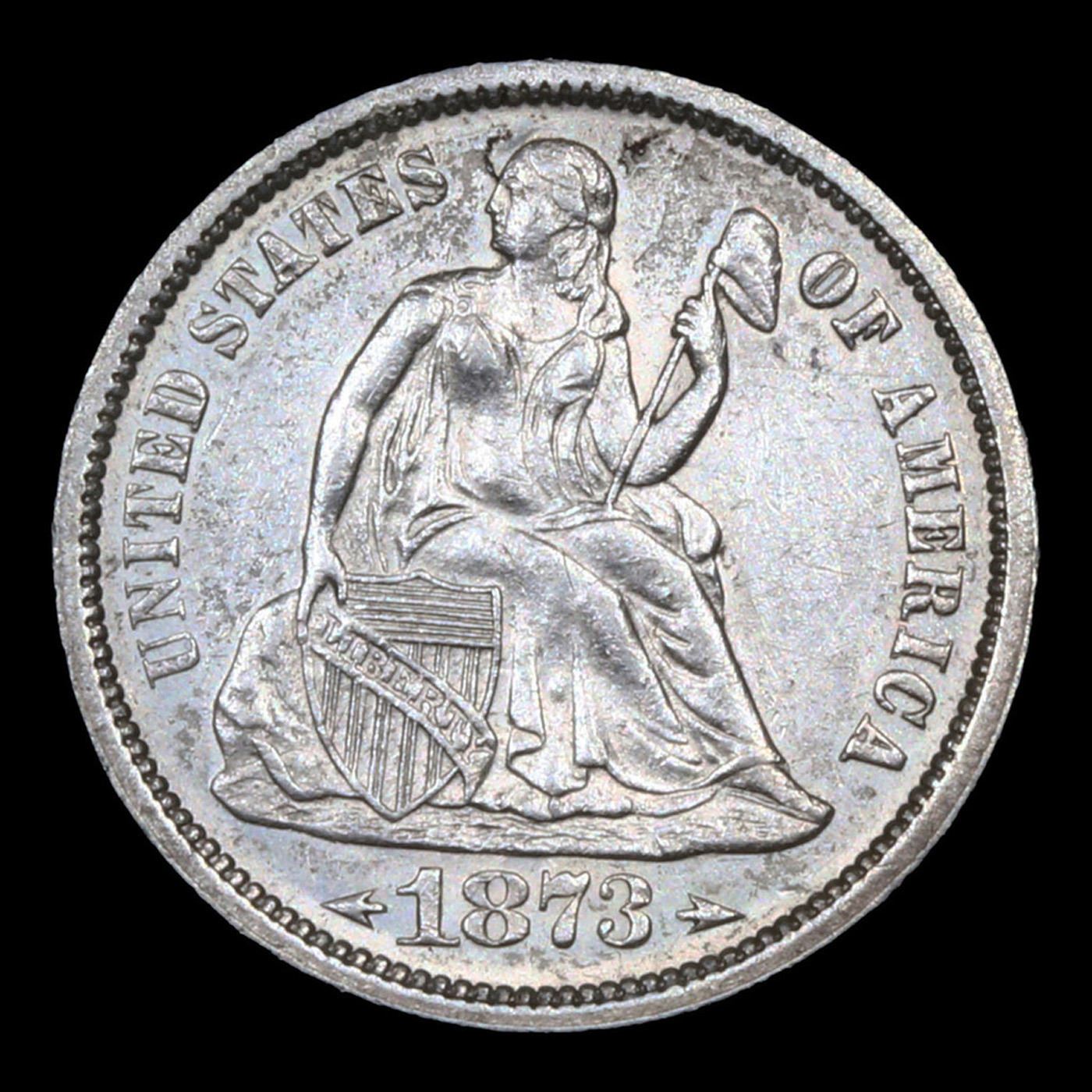 ***Auction Highlight*** 1873 arrow at Date Seated Liberty Dime 10c Graded Select Unc By USCG (fc)